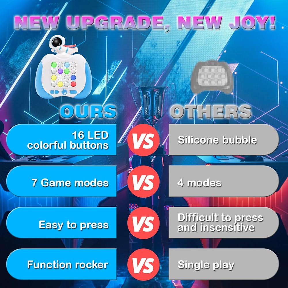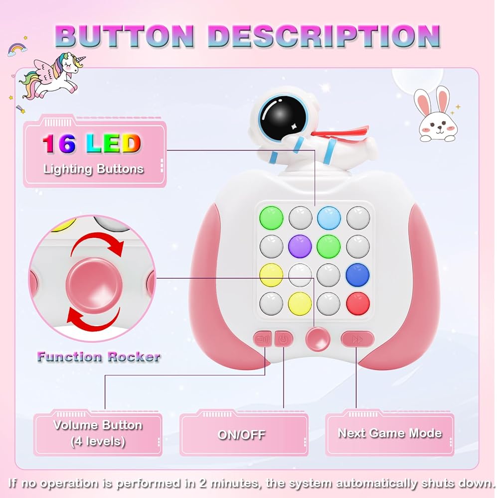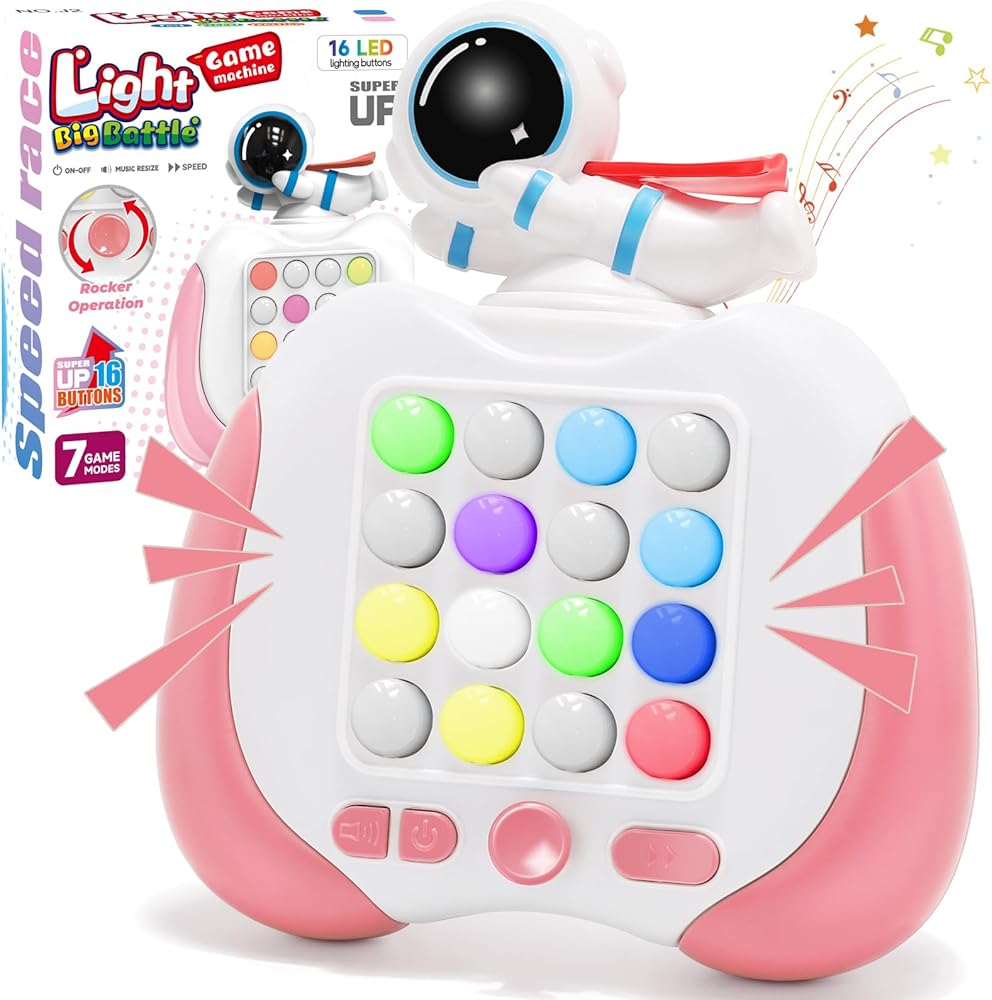 لعبة Light Battle المحمولة: - آلة لعبة المعركة ذات الإضاءة السريعة التي تمت ترقيتها حديثًا، و16 زر إضاءة من السيليكون LED مع 7 أوضاع لعب وأكثر من 999 مستوى. تصميم الحيوانات الكرتونية يمكن أن يجذب انتباه الأطفال!