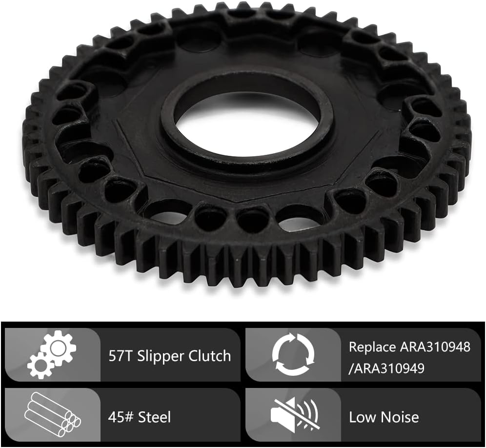 • 【57T Spur Gear Specification】Upgrade replace ARA310945 spur gear, 57-tooth (0.8 metric pitch, compatible with 32-pitch).