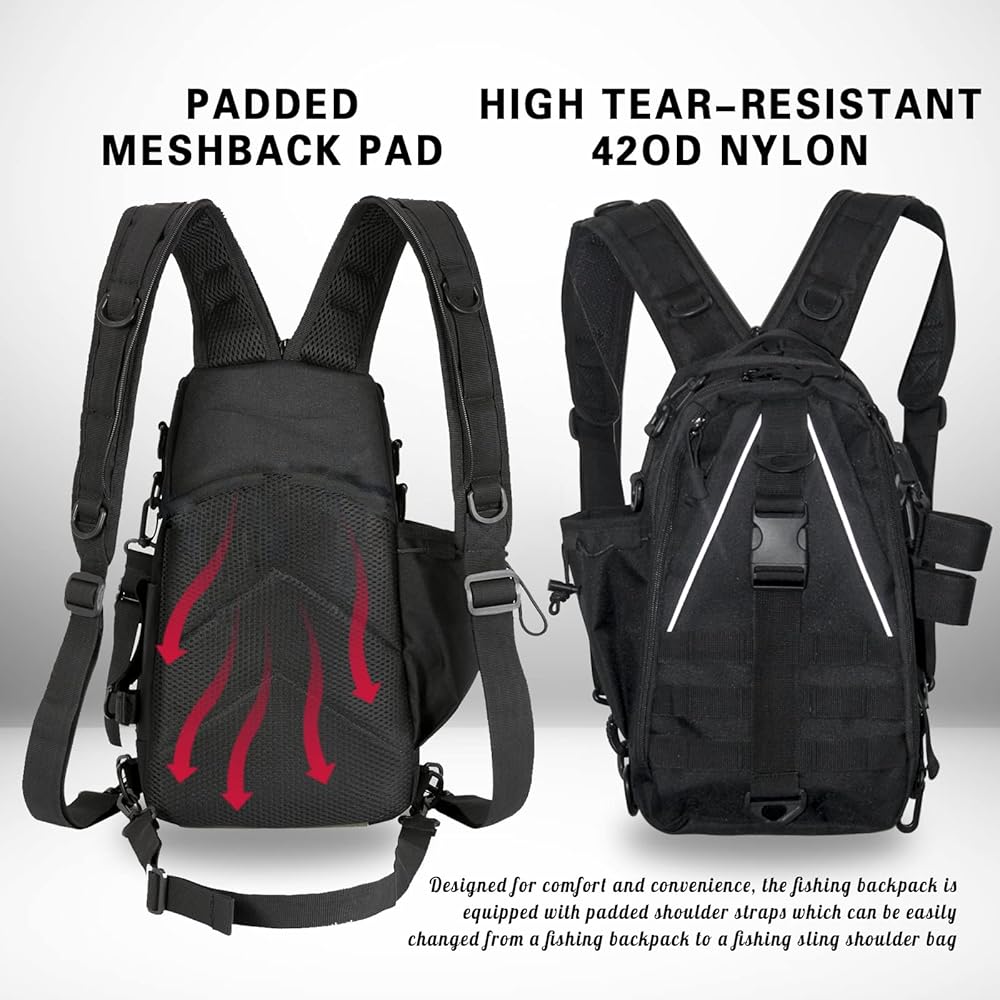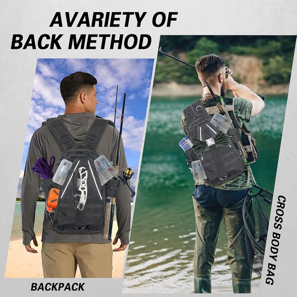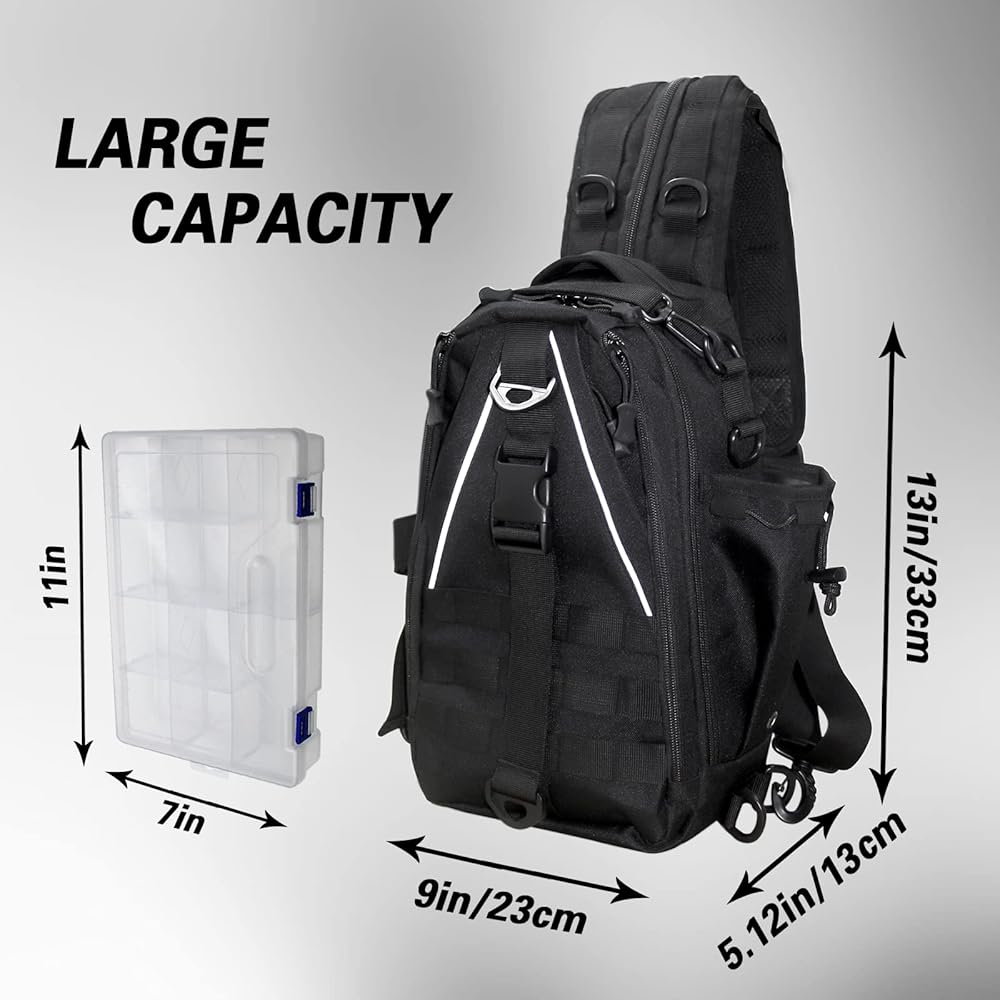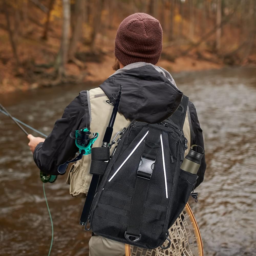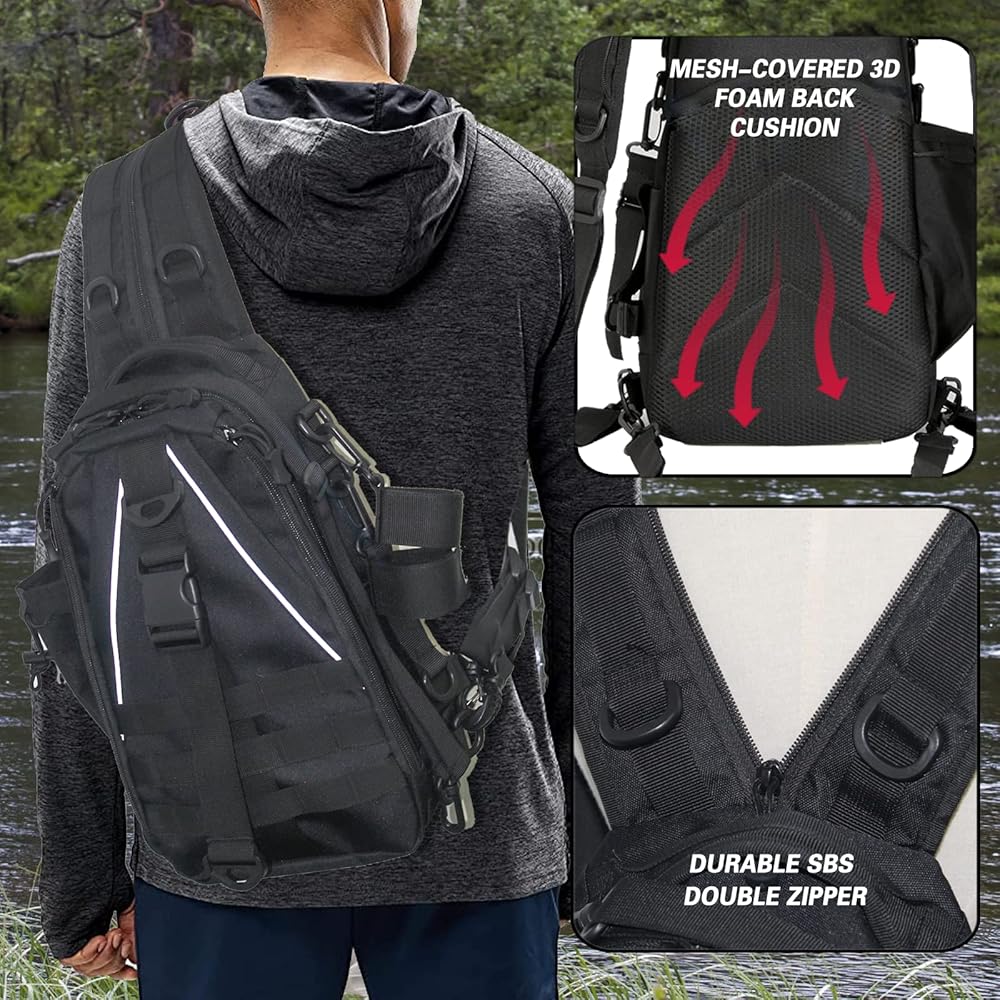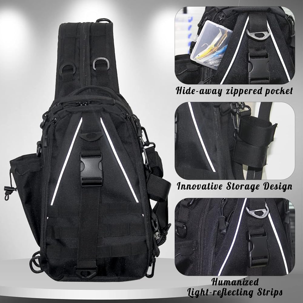 تصميم بخمسة جيوب: تحتوي حقيبة الصيد ذات الساق المتدلية هذه على ما مجموعه خمسة جيوب بسحاب، بما في ذلك جيبين أماميين بسحاب، وجيب تخزين أمامي، وجيب رئيسي وجيب واحد بسحاب على الحافة العلوية. يمكن وضعها في طبقات لتخزين صناديق الصيد الخارجية، والطُعم، وخطافات الطيران، والخطافات، وخط الصيد، والهاتف الخلوي، وبطاقات الائتمان، وحتى iPad mini