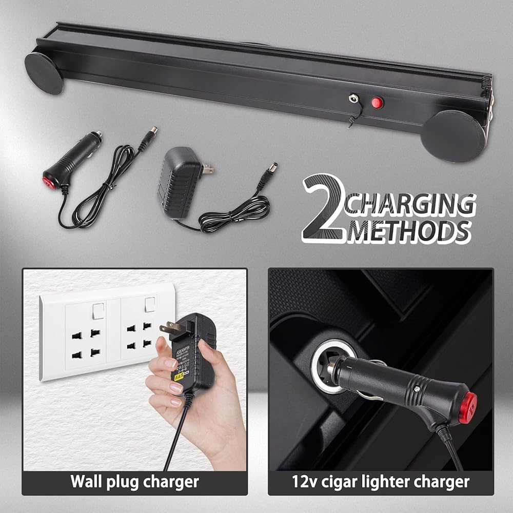 قابلة لإعادة الشحن ومقاومة للماء: طريقتان للشحن: يأتي مع شاحن قابس حائط ولاعة سجائر 12 فولت، مناسب لإعادة الشحن. مصنوعة من هيكل من سبائك الألومنيوم عالي التحمل وتصميم محكم الغلق مقاوم للماء، يمكنها تحمل المطر والثلج والأوساخ والرمل، والتكيف مع جميع أنواع الطقس.