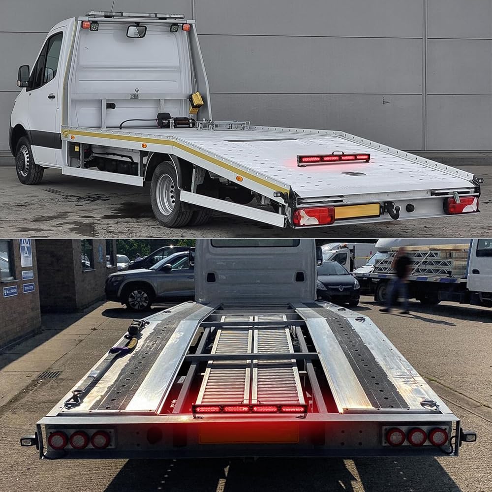 32 شريط إضاءة LED: يتضمن 4 وظائف إضاءة رئيسية: ضوء الجري، ضوء الفرامل، أضواء الخطر، وإشارات الانعطاف لليسار/اليمين. 32 مصباح LED فائق السطوع يوفر كثافة عالية، ويضمن سلامة قيادتك في وضح النهار أو منتصف الليل أو المطر أو الضباب