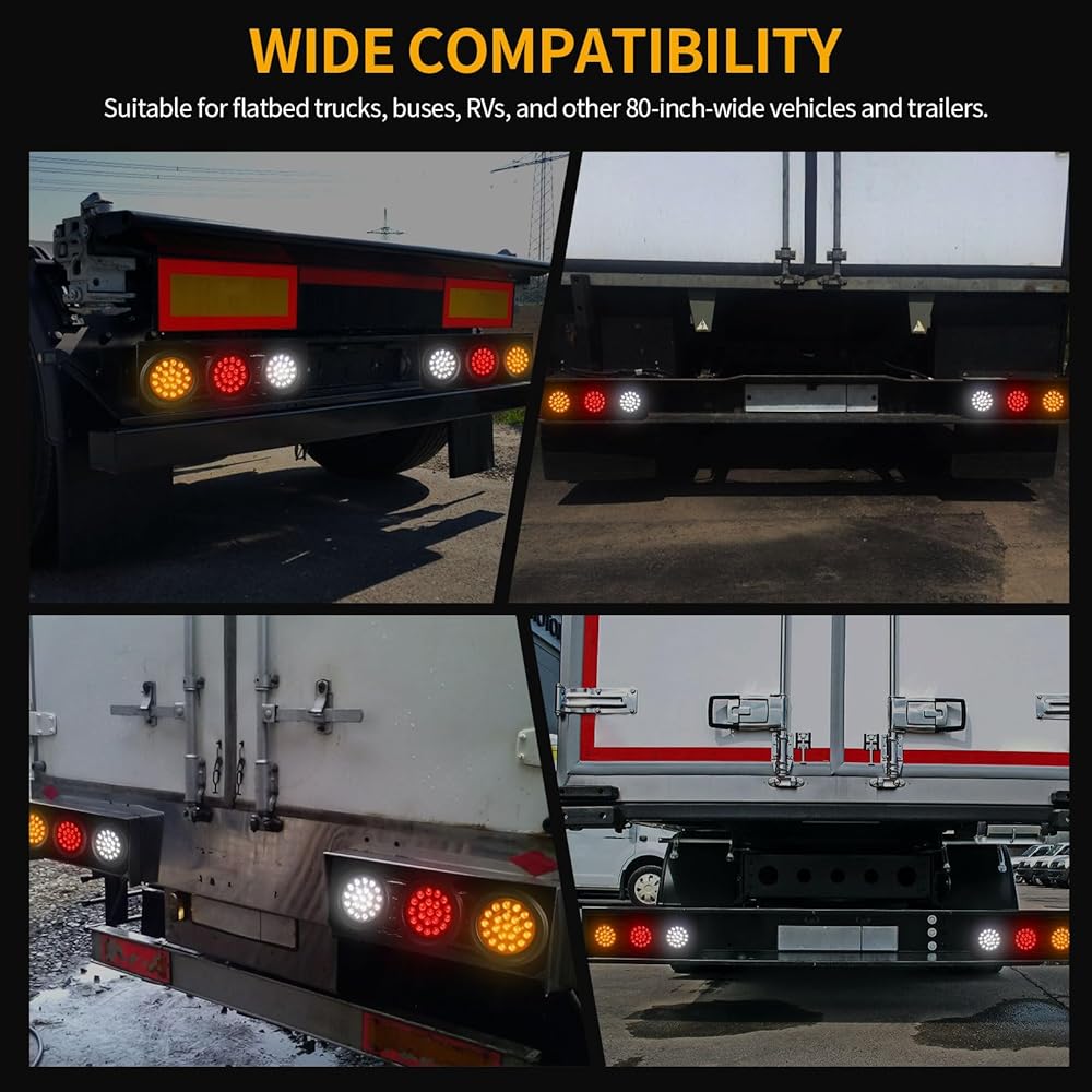 【سطوع جيد لمصابيح الذيل】تحتوي مصابيح فرامل المقطورة على إجمالي 63 مصباح LED، كل مصباح يحتوي على 21 مصباح LED، أداء فائق السطوع ومستقر.