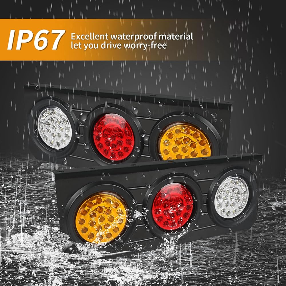 【ختم جيد】تصميم إغلاق أضواء المقطورة LED يمكن أن يقاوم الغبار والرمل والرطوبة وقطرات المطر بشكل فعال، مما يطيل عمر الخدمة. تصنيف IP68 للماء.
