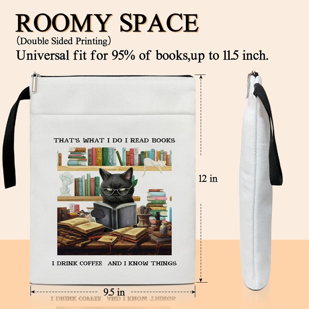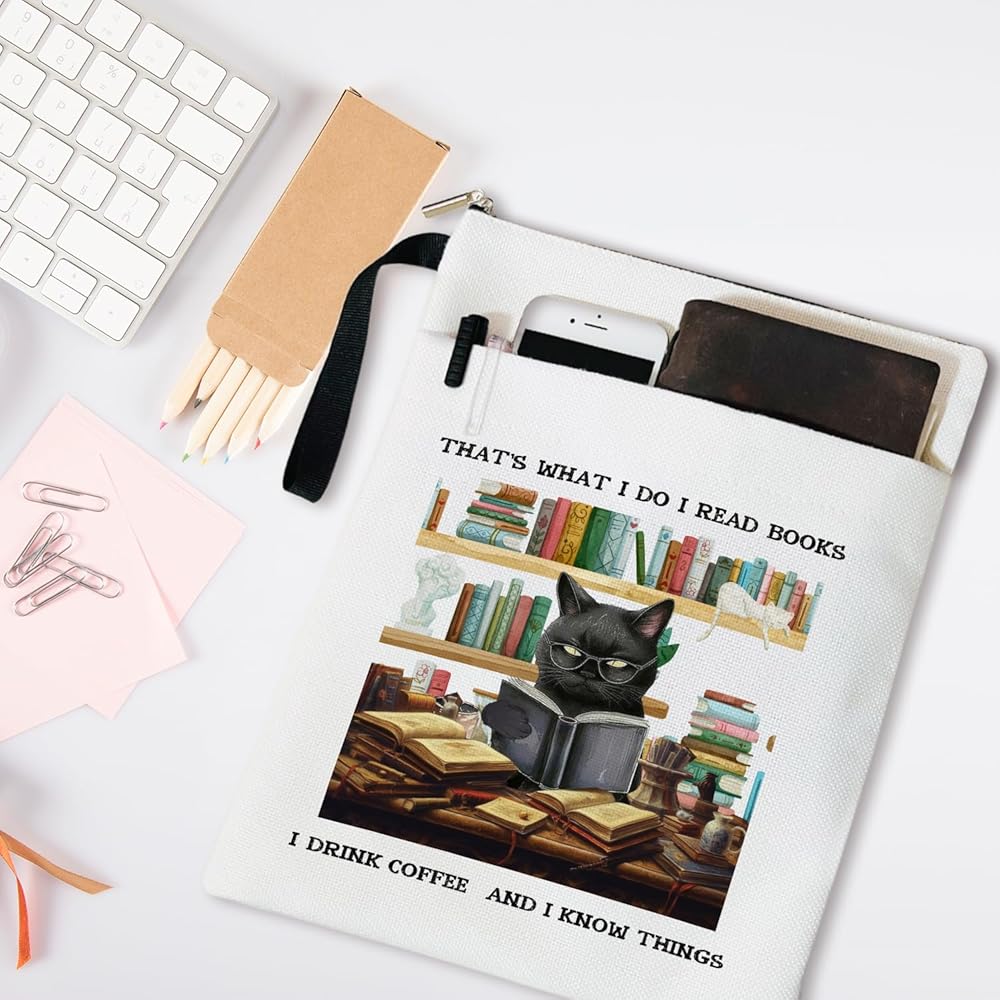 غطاء كتاب ملهم للقطط السوداء، غلاف كتاب للقطط مع سحاب، غطاء للكتاب وغطاء حماية لجهاز Kindle، غلاف للكتاب لمحبي الكتب، هدايا للقطط للنساء المراهقات، مكتبة الكتب -06