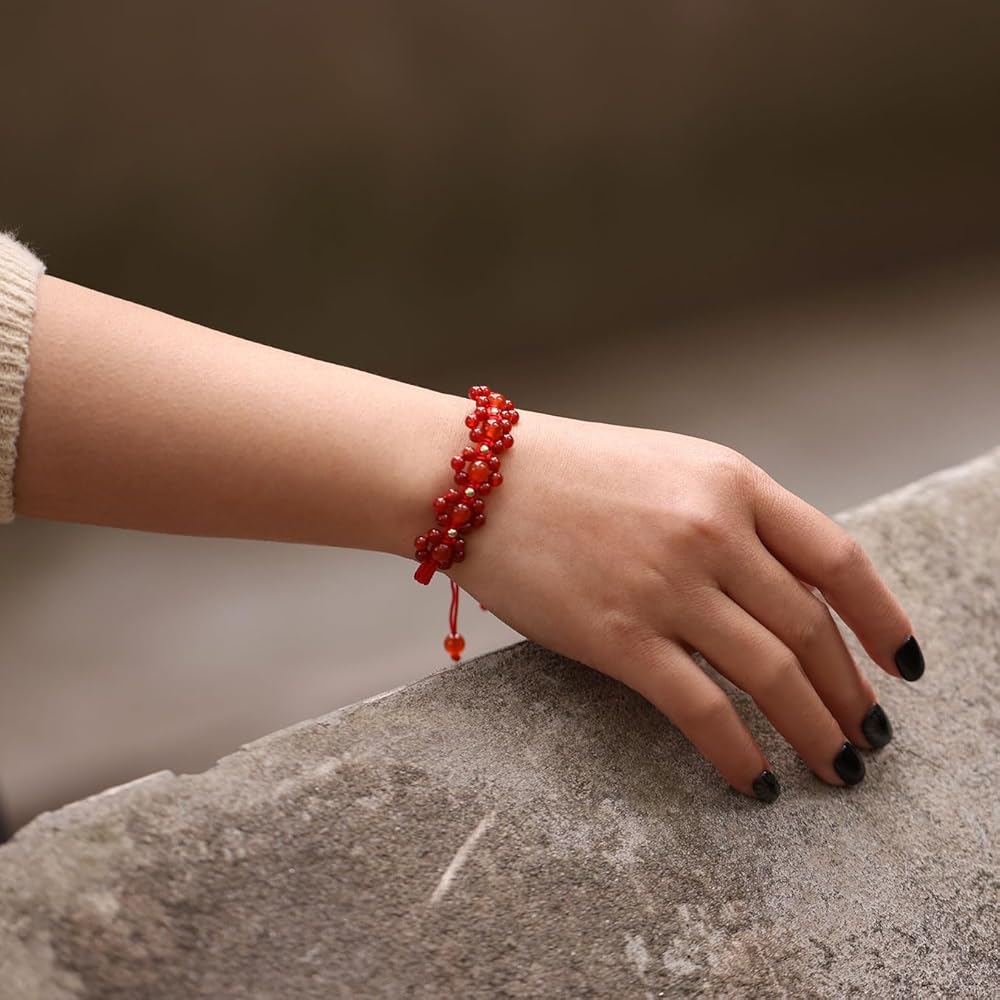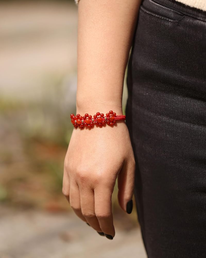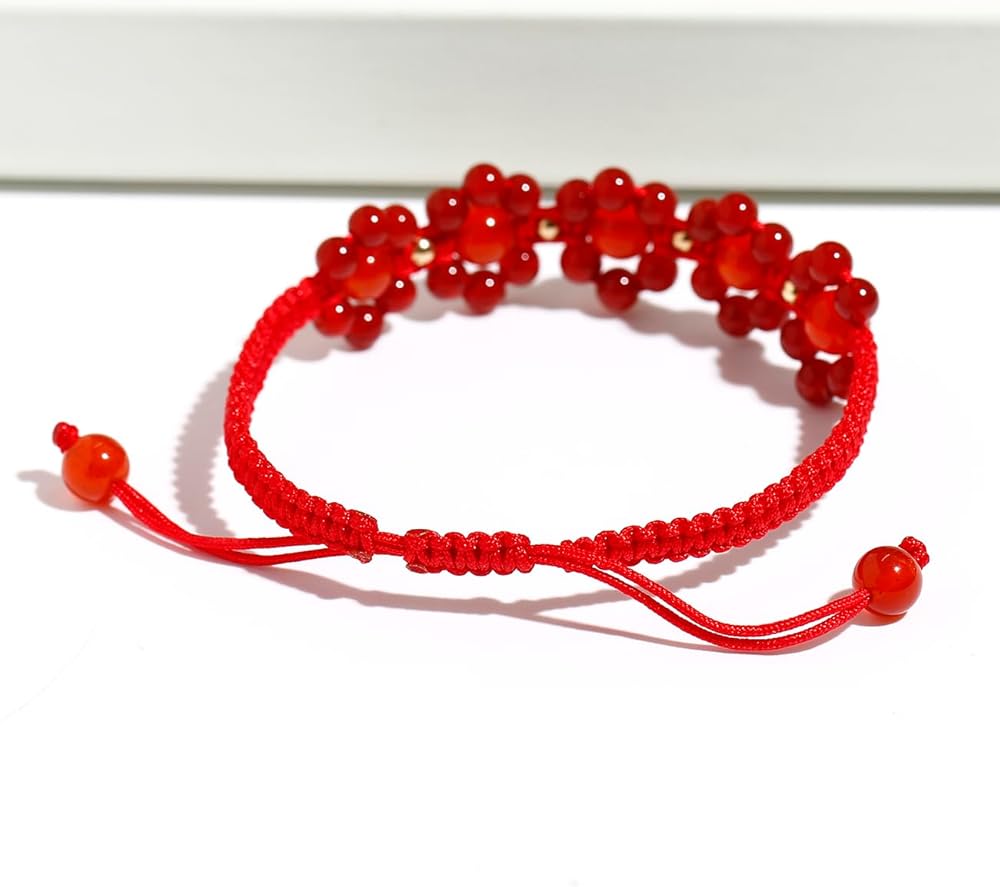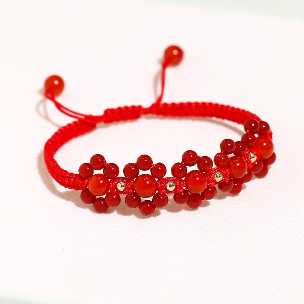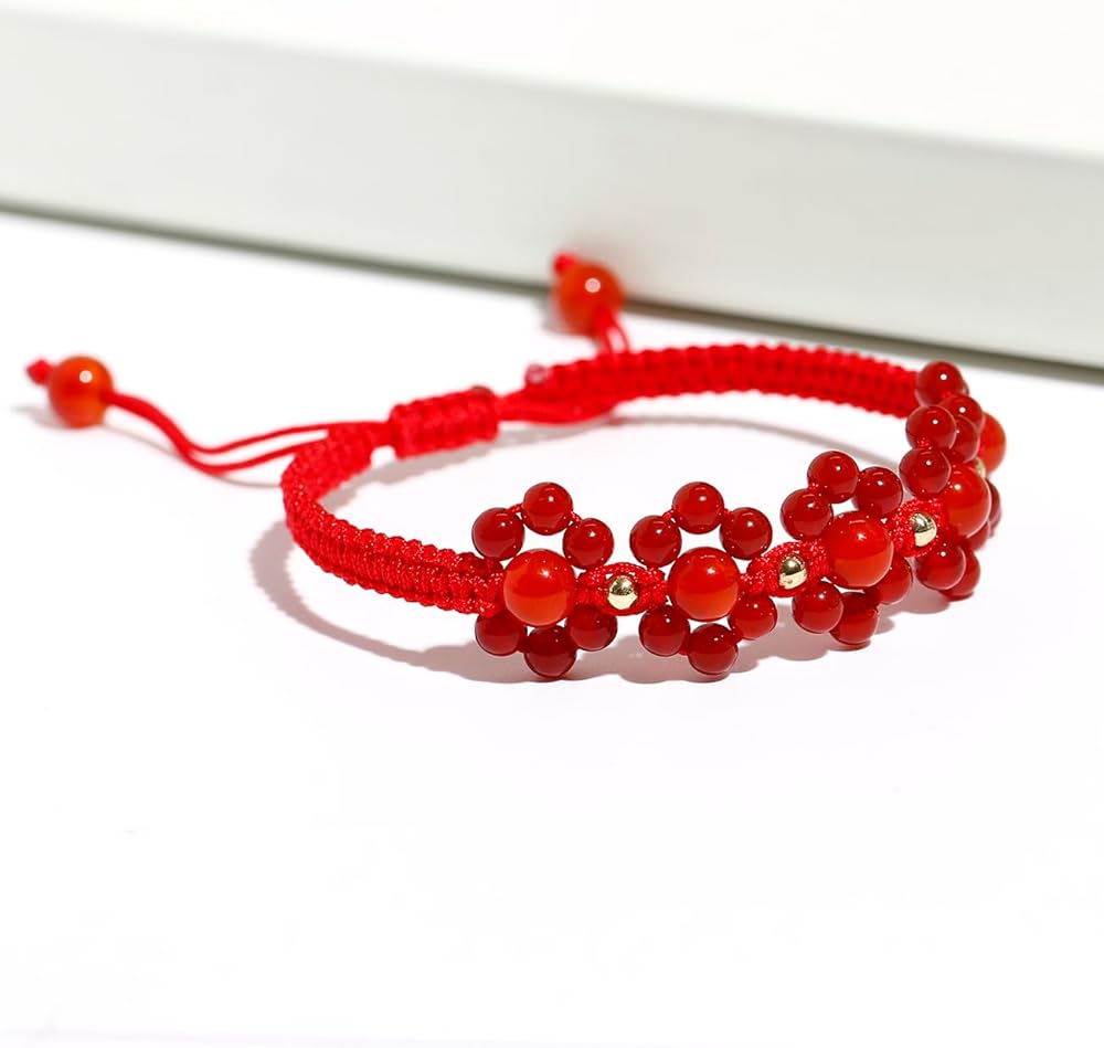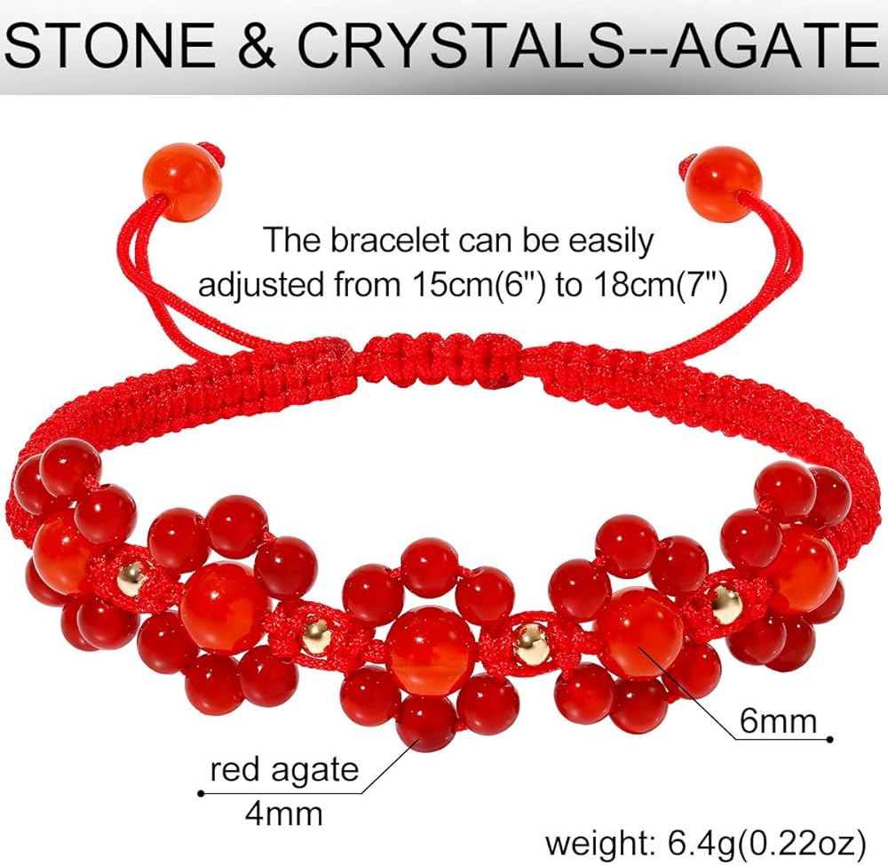 المواد: العقيق الأحمر الطبيعي، قطر الخرزة: 4 مم (0.16 بوصة)، 6 مم (0.23 بوصة)، عقدة الانزلاق القابلة للتعديل تسمح لمعظم الأشخاص بالحصول على ملاءمة مثالية، ويمكن تعديل السوار بسهولة من 15 سم (6 بوصات) إلى 18 سم ( 7 بوصات)، الوزن: 6.4 جم (0.22 أونصة)؛