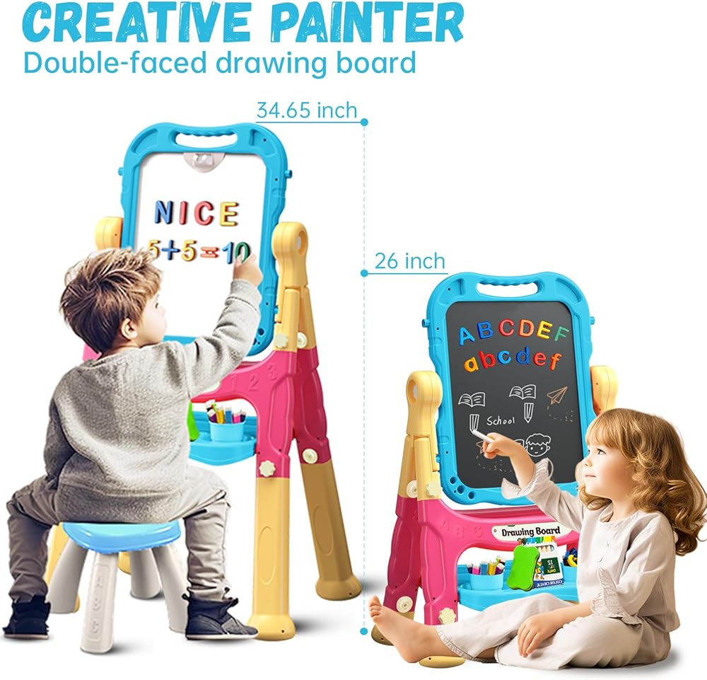 • ارتفاع قابل للتعديل يفيد الأطفال الصغار والأطفال: هذا الحامل الفني مجهز بأرجل قصيرة وطويلة يمكن تعديلها وفقًا لارتفاع الأطفال. بالإضافة إلى ذلك، فإن الميزة القابلة للتعديل تجعل الحامل لعبة ذات معنى يمكن أن تلبي احتياجات وضعية الوقوف والجلوس، وترافق الطفل عندما يكبر.