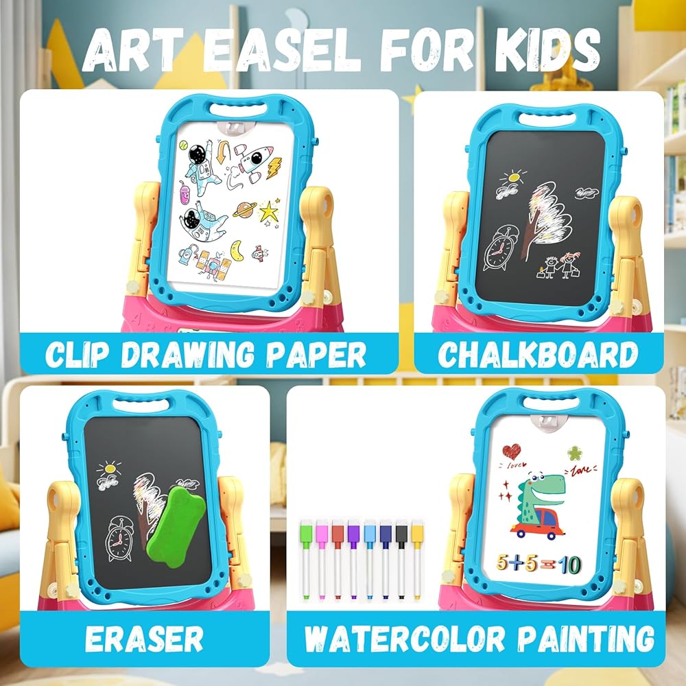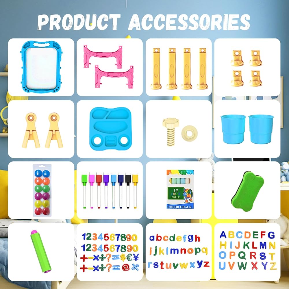 • الجمع بين المرح والتعلم: بالإضافة إلى تعزيز المهارات الفنية، توفر الحوامل الفنية للأطفال فرصة رائعة لدمج وقت اللعب مع التعليم. يمكن استخدامها لتعليم المفاهيم الأساسية مثل الحروف والأرقام والأشكال والمزيد، مما يسمح للأطفال بالتعلم أثناء الانخراط في الأنشطة الإبداعية. لتعزيز تجربتهم التعليمية بشكل أكبر، نقدم الحروف الأبجدية المغناطيسية وبلاطات الأرقام كمصدر تعليمي مفيد.