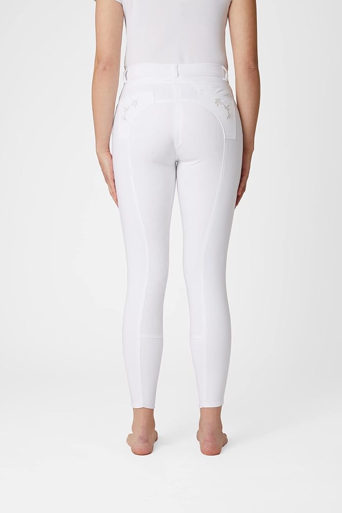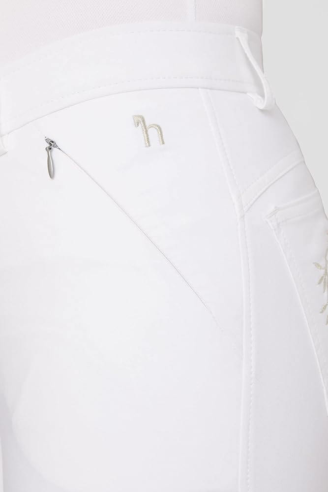 سروال نسائي من HORZE Kaitlin بنمط الزهور مصنوع من السيليكون بمقعد كامل مع جيب للهاتف - أبيض - 32