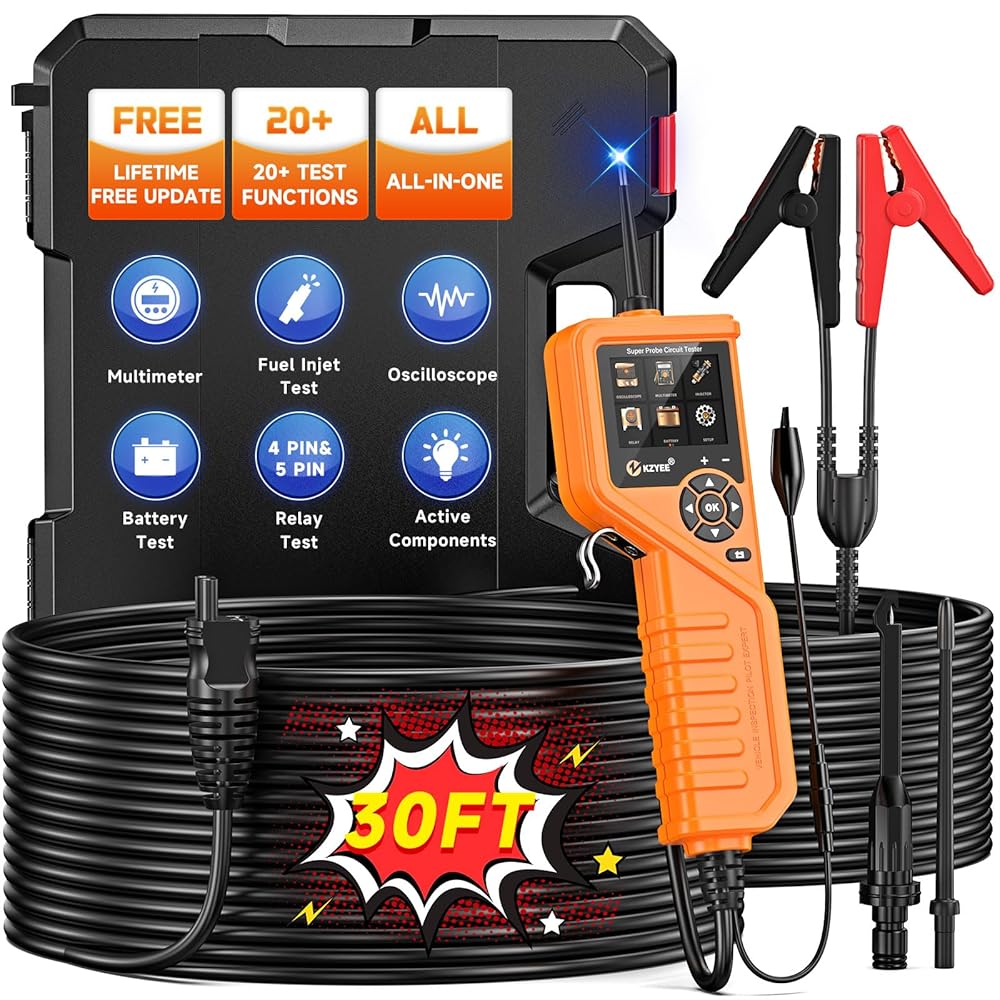 KZYEE KM601 (ترقية KM10) جهاز اختبار دائرة المسبار الفائق، مجموعة مسبار دائرة طاقة السيارات 12 فولت 24 فولت، مقياس متعدد/منظار الذبذبات/اختبار التتابع/اختبار البطارية/اختبار حاقن الوقود، مكتشف قصير، كابل 30 قدم