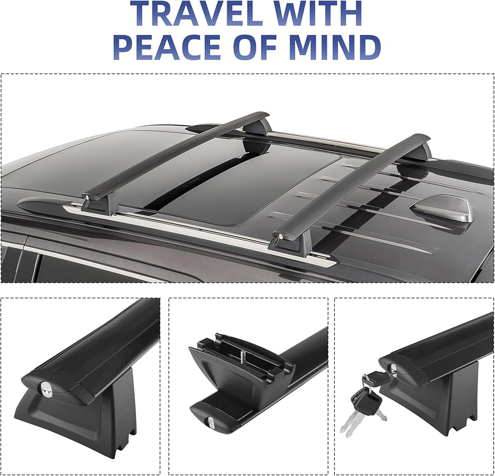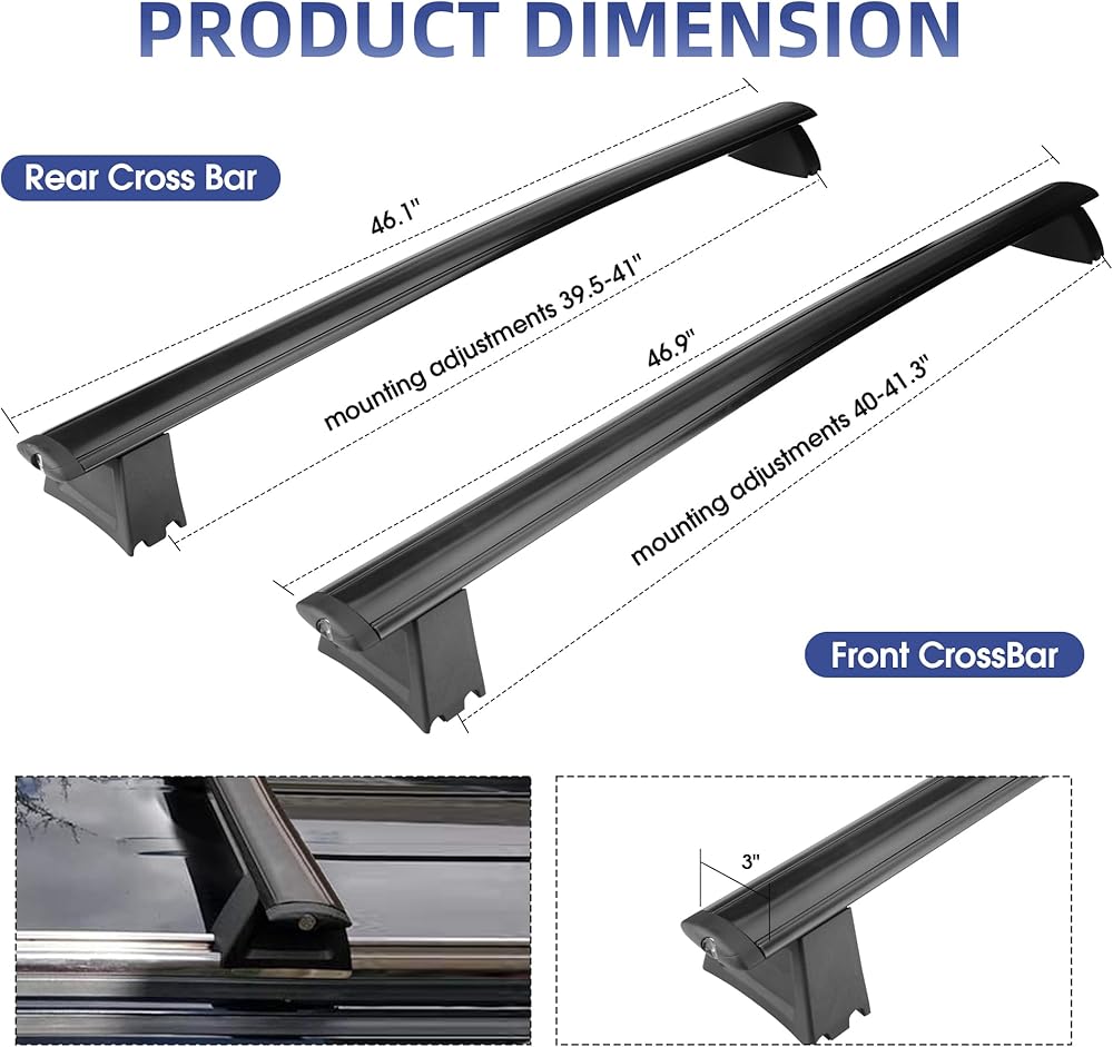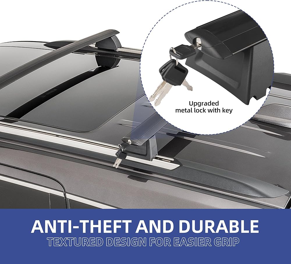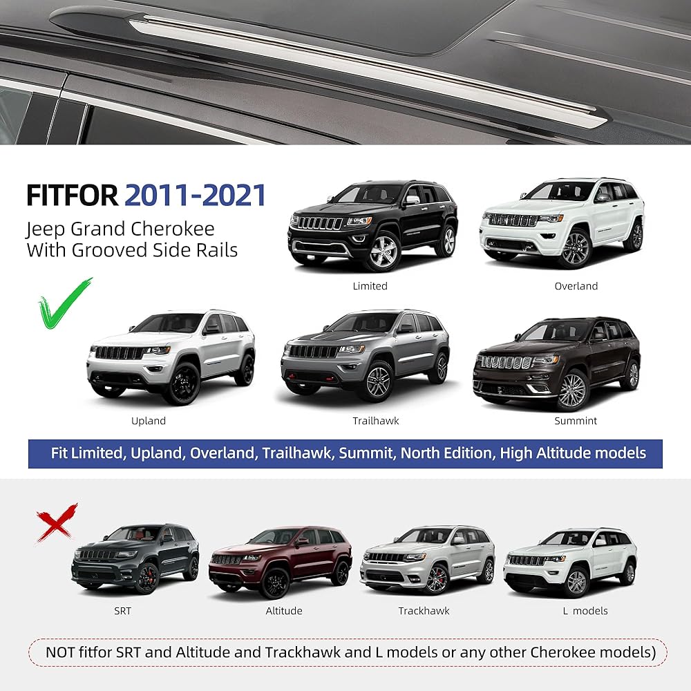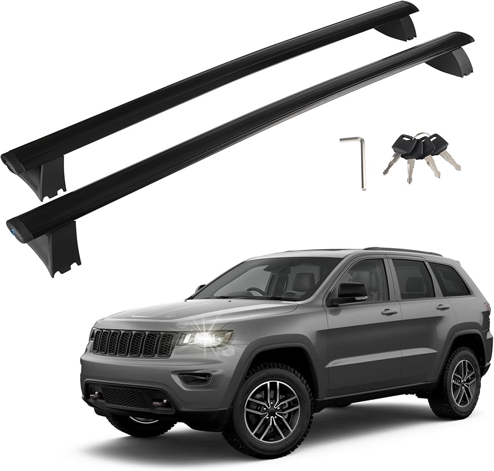 • 👍【VEHICLE FITMENT】Designed for Jeep Grand Cherokee: Our roof rack cross bars are specially designed for Jeep Grand Cherokee 2011-2021. Easily attaches to heavy duty roof rails cargo bar without drilling as they mount securely onto the original holes on the roof. And the mounting feet can be adjusted 2". All the necessary accessories are included for a quick and easy installation that takes only about 10 minutes! This upgrade version added a metal anti-theft lock system for 100% security.
