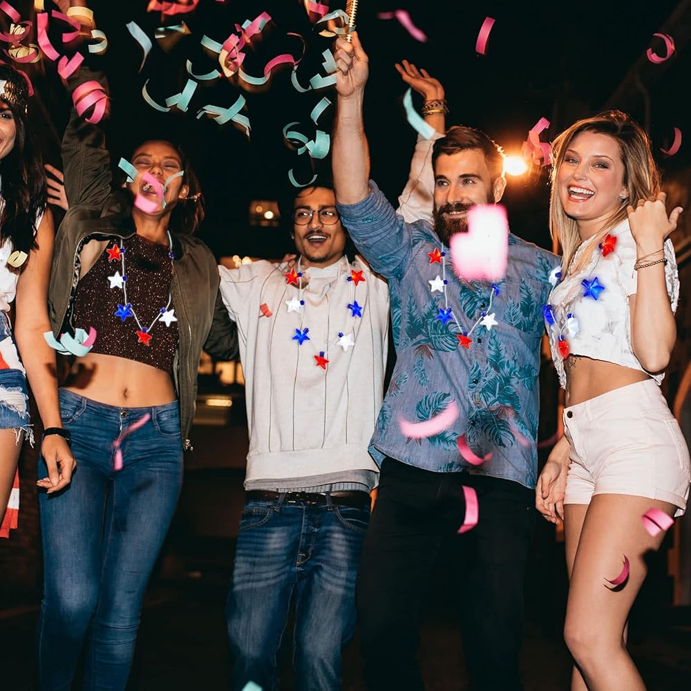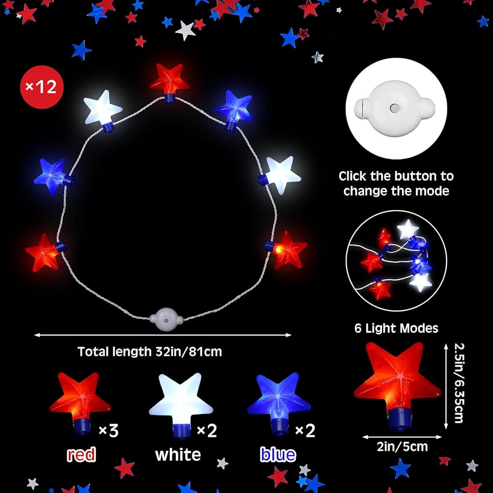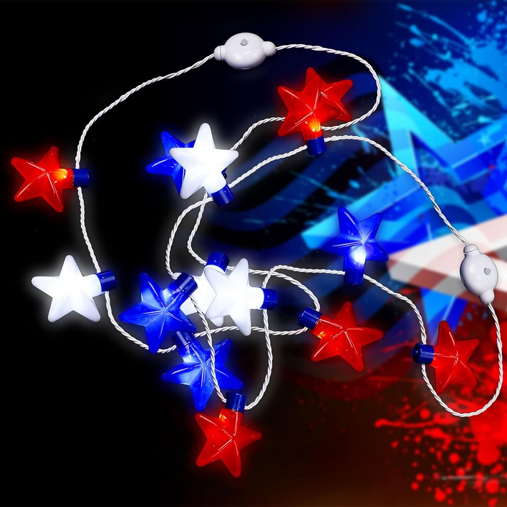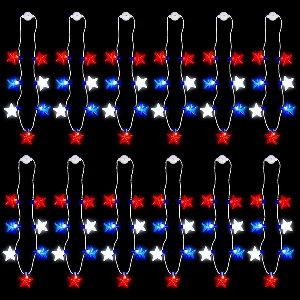 Designed with mainstream colors of red, blue and white, these light up patriotic necklaces are ideal for Veterans Day, Independence Day, patriotic party supplies, parade, celebration activities or so.