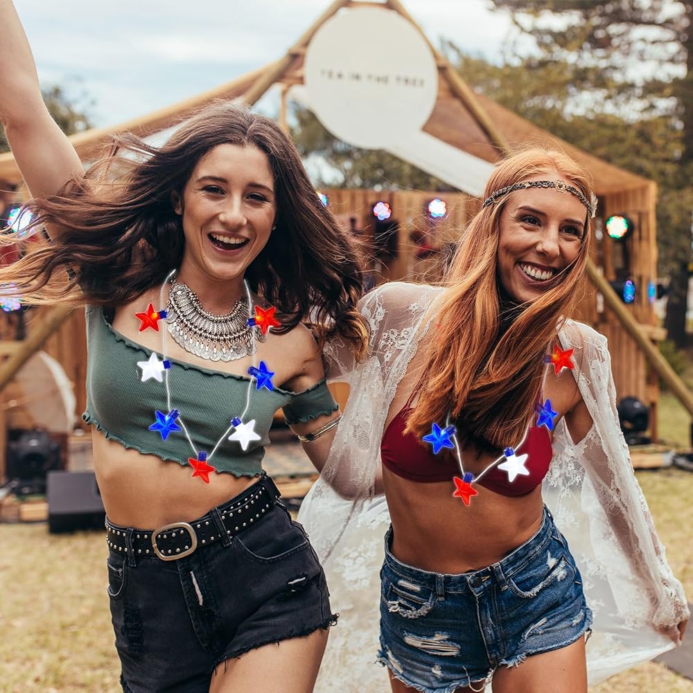 The patriotic light up led star necklace can glow in the dark, just wear them to enjoy the 4th of July celebration!