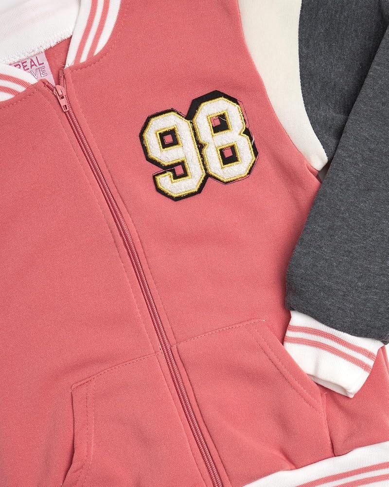 Keep her cozy and stylish with this Real Love Girls' Sweatshirt and Jogger Pants Set. Designed with ultra-soft fleece fabric, this 2-piece outfit offers premium comfort for all-day wear. The trendy varsity-inspired design features either a zip-up hoodie or button-front sweatshirt paired with matching jogger pants, perfect for school, sports, or simply staying at home. The flexible waistband ensures a snug fit, while the durable fabric is made to withstand active play. Ideal for girls aged 7-12, this set combines style, comfort, and functionality. Whether she's on the move or relaxing, this girls' sweatshirt and jogger outfit is her go-to choice for any occasion. Available in multiple colors and sizes, it's a must-have addition to her wardrobe!