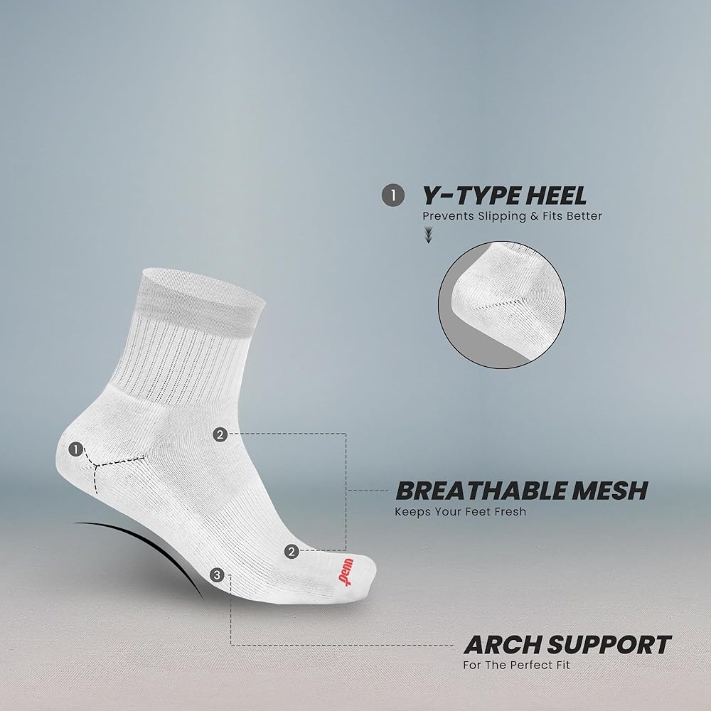 • Cushioning Where It Counts: Enjoy the comfort of thick loops strategically placed on the toes, soles, and heels. This cushioning is designed to minimize friction between your feet and shoes, significantly reducing the risk of blisters and discomfort. Whether you are on a long run or standing all day at work, these socks provide the cushioning needed to keep your feet comfortable and supported.