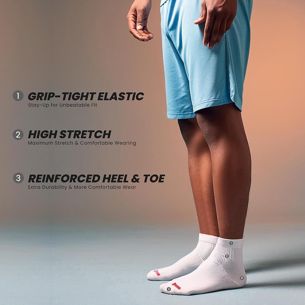 Introducing Penn Men's Quarter Socks – the perfect blend of comfort, functionality, and style. Crafted to move seamlessly with you, these socks are designed to keep your feet dry and comfortable throughout the day. Whether you're walking the dog, running errands, hitting the gym, or standing for extended periods, our quarter socks stay discreet and provide unmatched comfort. Featuring a No-Slip construction, these socks gently hug your foot to prevent any unwanted movement inside your shoe. This thoughtful design ensures a secure fit, allowing you to focus on your activities without the distraction of adjusting your socks. Ideal for anyone who leads an active lifestyle, these socks make a wonderful gift for anyone who enjoys working out or staying active. One of the standout features of these Socks is their versatility in matching your wardrobe. Whether you're dressing quickly in the morning or changing after practice, these socks pair effortlessly with any outfit. Available in a convenient multipack, you can stock up on these socks without spending a fortune, making them a practical addition to your sock drawer. Maintaining these socks is a breeze – they are simple to machine wash and dry, ensuring they stay fresh and ready for your next adventure. For your convenience, please refer to the variations to explore all available sizes and colors. At Penn, we take pride in offering premium clothing because we value every customer who visits our listings. We are confident that you'll discover items that make perfect gifts for loved ones or even a special treat for yourself. Experience the exceptional quality and comfort of Penn Men's Quarter Socks – a choice you'll absolutely love and adore!