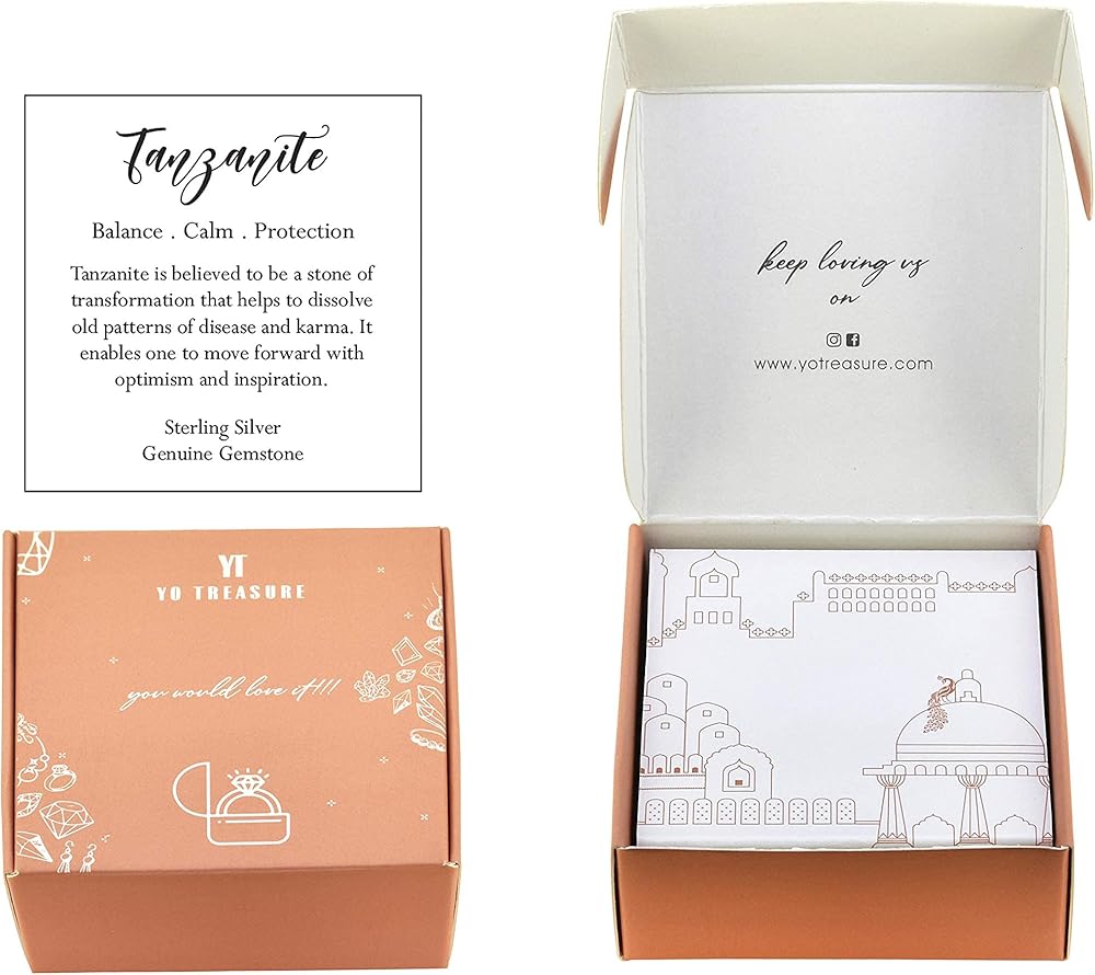 • ✦ تم تعزيز مجوهرات الأحجار الكريمة التنزانيت المصنوعة يدويًا بتصميم جذاب لجعلها تبدو أكثر أناقة وجمالاً.