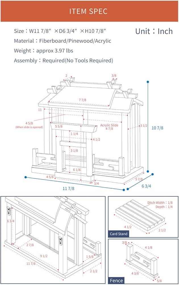 【نصف مجمعة】 تأتي العناصر نصف مجمعة. إرفاق الحلي فقط. يمكن فصل بوابة Torii والأسوار. يتطلب أدوات فقط عند التركيب على الحائط.