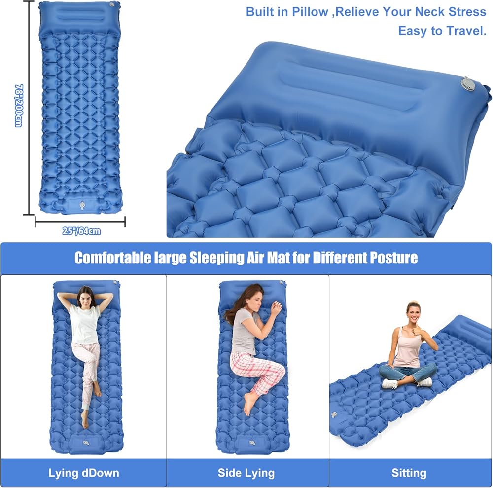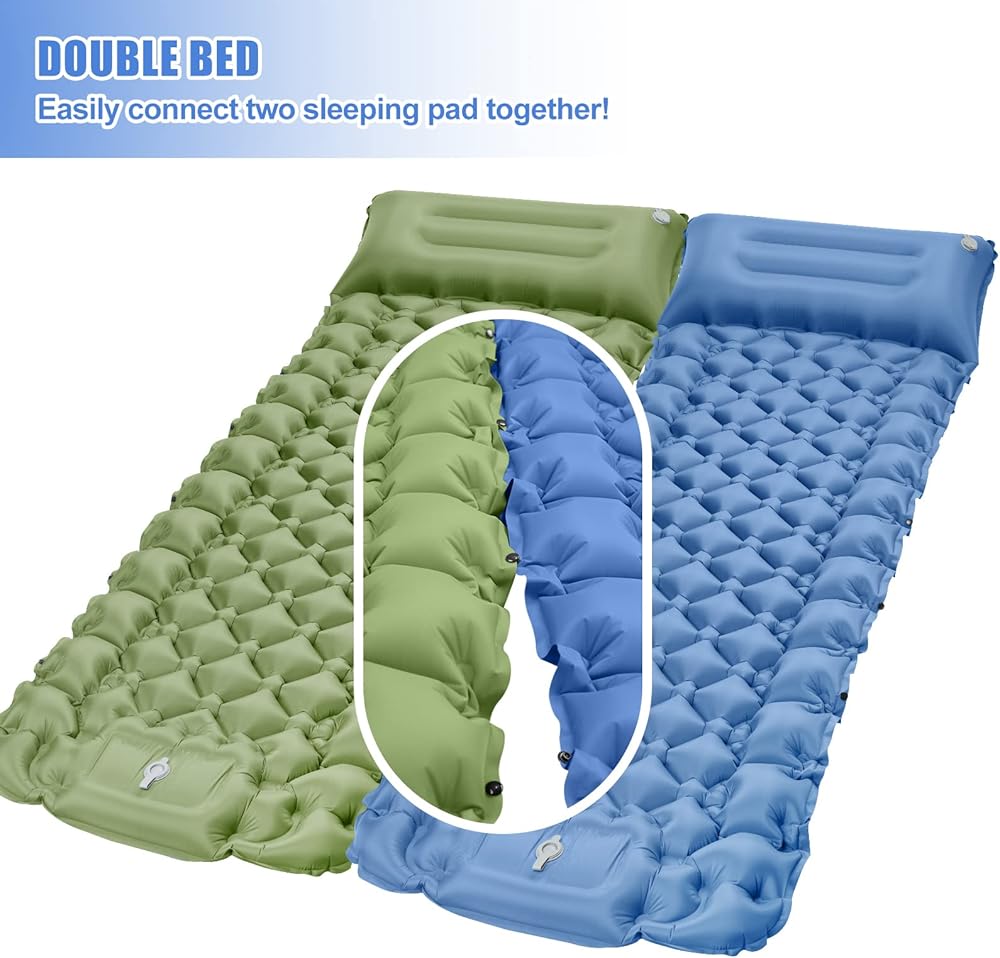 【وسادة نوم مزدوجة للتخييم】وسادة ذاتية النفخ يصل حجمها إلى 78 بوصة × 49 بوصة × 3.9 بوصة عند نفخها، وهي كبيرة بما يكفي لشخصين. يمكن لهذا السُمك أن يتحمل التضاريس الصخرية تحتها. من الجيد مشاركة وسادة النوم المريحة هذه مع فتياتك /الزوجة، الأطفال، الأصدقاء، الكلاب.[ترقية الوسادة: توفر لك سجادة النوم ذات الوسائد السميكة الكبيرة جدًا راحة لا مثيل لها لتجربة نوم مثالية.]