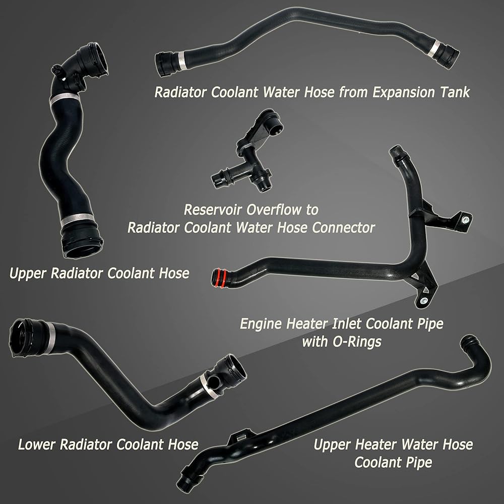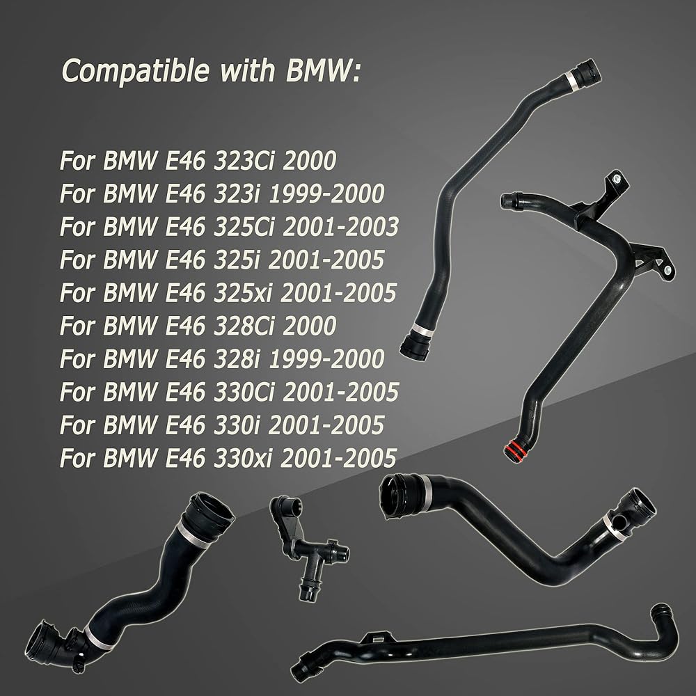 مجموعة خرطوم المبرد لخزان التوسيع، خرطوم الرادياتير العلوي السفلي ومجموعة خرطوم المياه، يناسب BMW E46 325Ci 325i 325xi 330Ci 330i 330xi 323Ci 323i 328Ci 328i، 1999-2005، 2.5/2.8/3.0L، 6 قطع
