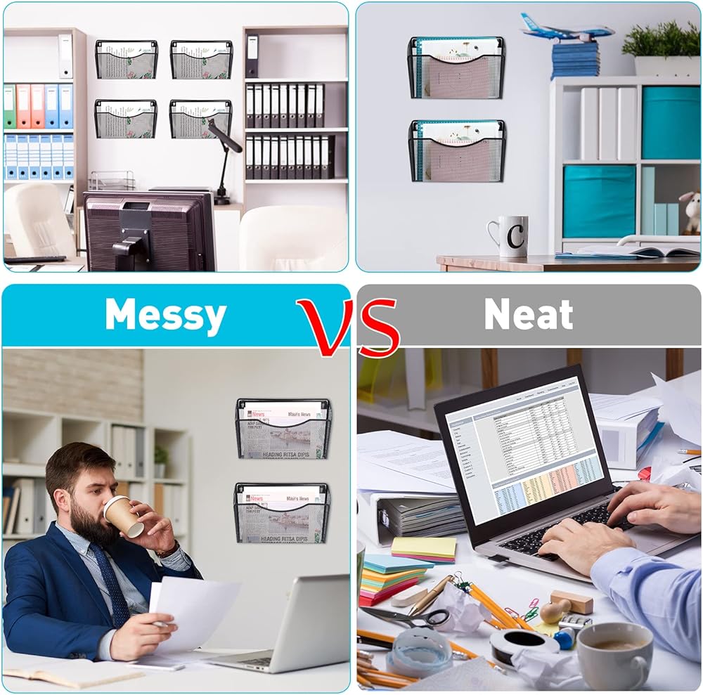 Mesh wall mounted file holder organizer is suitable for sorting files, documents, magazines, literature, catalogs, mail, letters, charts, brochures and notebooks. Spend less time looking for what you need and more time focusing on important things.