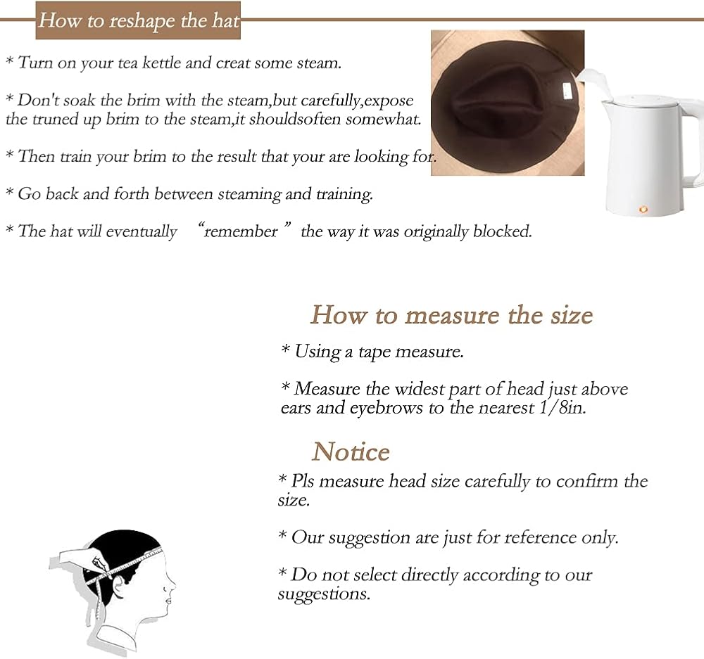 Hat circuference:56cm-58cm/22-22.8in;Brim Width:7cm/2.7in;Hat Height:12cm/4.7in; One size fits most.