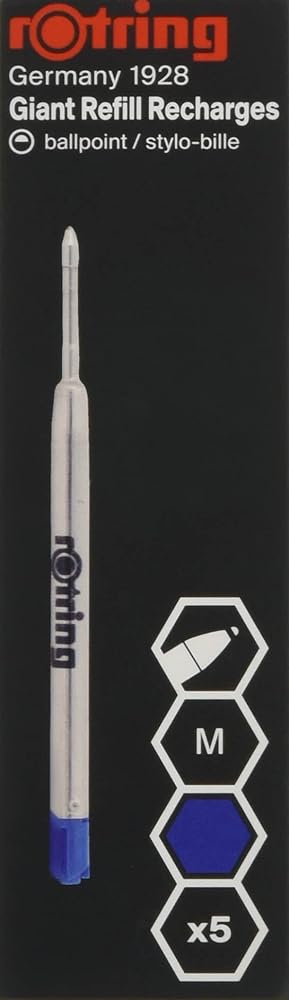 إعادة تعبئة قلم حبر جاف Rottling، نقطة متوسطة، متوسطة، زرقاء، 5 عبوات من أجل Rapid Pro/Ticky، قلم رصاص ميكانيكي rOtring، معدات كتابة دقيقة، قرطاسية، صنع في ألمانيا، قلم صياغة احترافي