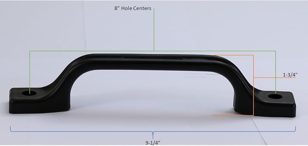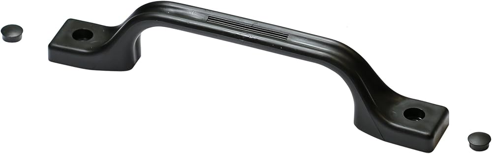 Enhance the functionality and durability of your RV, trailer, or boat with this 2-pack of Hamilton Bowes RV External Handle Entry Grab Door Assist Bars. The bars can be mounted horizontally or vertically, providing hundreds of uses and including caps to cover screws. For installation, it is suggested to place a bead of sealant underneath the grab handle to seal any screw holes. Each bar measures 9.25 inches in length with an 8-inch screw hole mounting distance and 1.25 inches in width. The package includes mounting screws and comes in a standard packaging. These handles are modern, black in color, and made of plastic material. Suitable for specific uses such as RV doors and vehicle doors, these Hamilton Bowes handles are easy to install and come with a unit count of 2.
