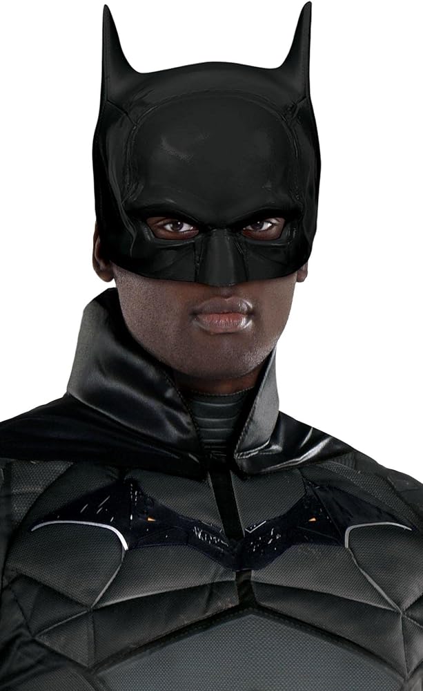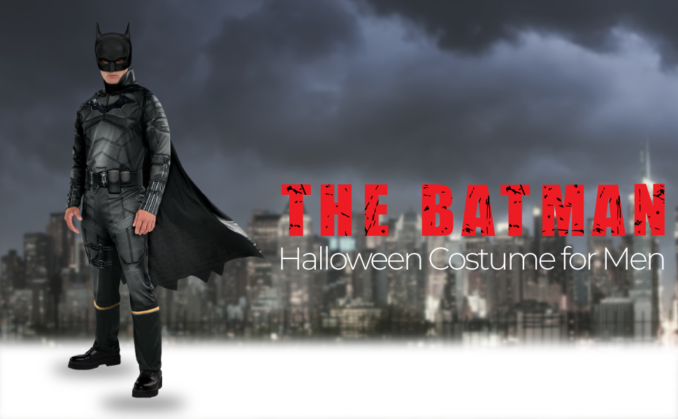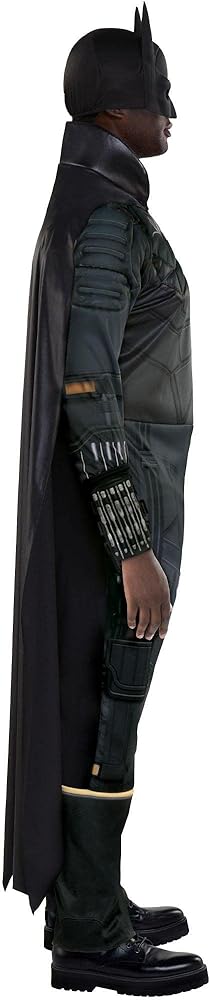 Bring Batman to life with this officially licensed costume based on the DC film The Batman. First, get into the jumpsuit that's printed with batsuit details and features a 3D matte emblem on the chest and light muscle padding on the shoulders and upper chest. Pull on the foam mask and attach the cape to the jumpsuit using the hook-and-loop straps. Complete the look by securing the utility belt, and you're ready to patrol the streets of Gotham City!