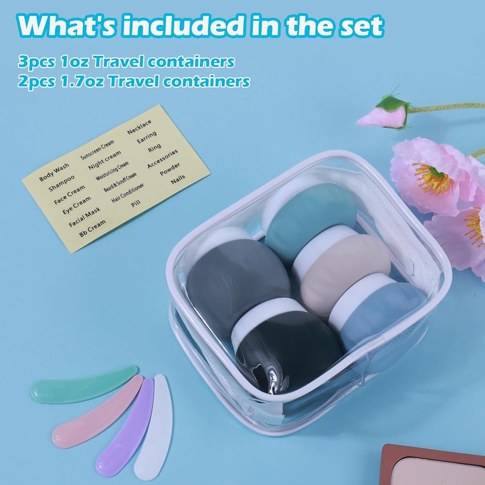 إكسسوار سفر يجب اقتناؤه: تحتوي هذه المجموعة على 4 حاويات سفر محمولة لتخزين المستحضرات الخاصة بك، وكريم الوجه والجسم وما إلى ذلك، و4 ملاعق بلاستيكية صغيرة لسهولة الغَرْف، و18 ملصقًا مقاومًا للماء لوضع علامات على المحتويات للتعرف السريع وتجنب الارتباك، و 1 حقيبة بلاستيكية شفافة بسحاب للحفاظ على منتجاتك منظمة بشكل جيد في أمتعتك.