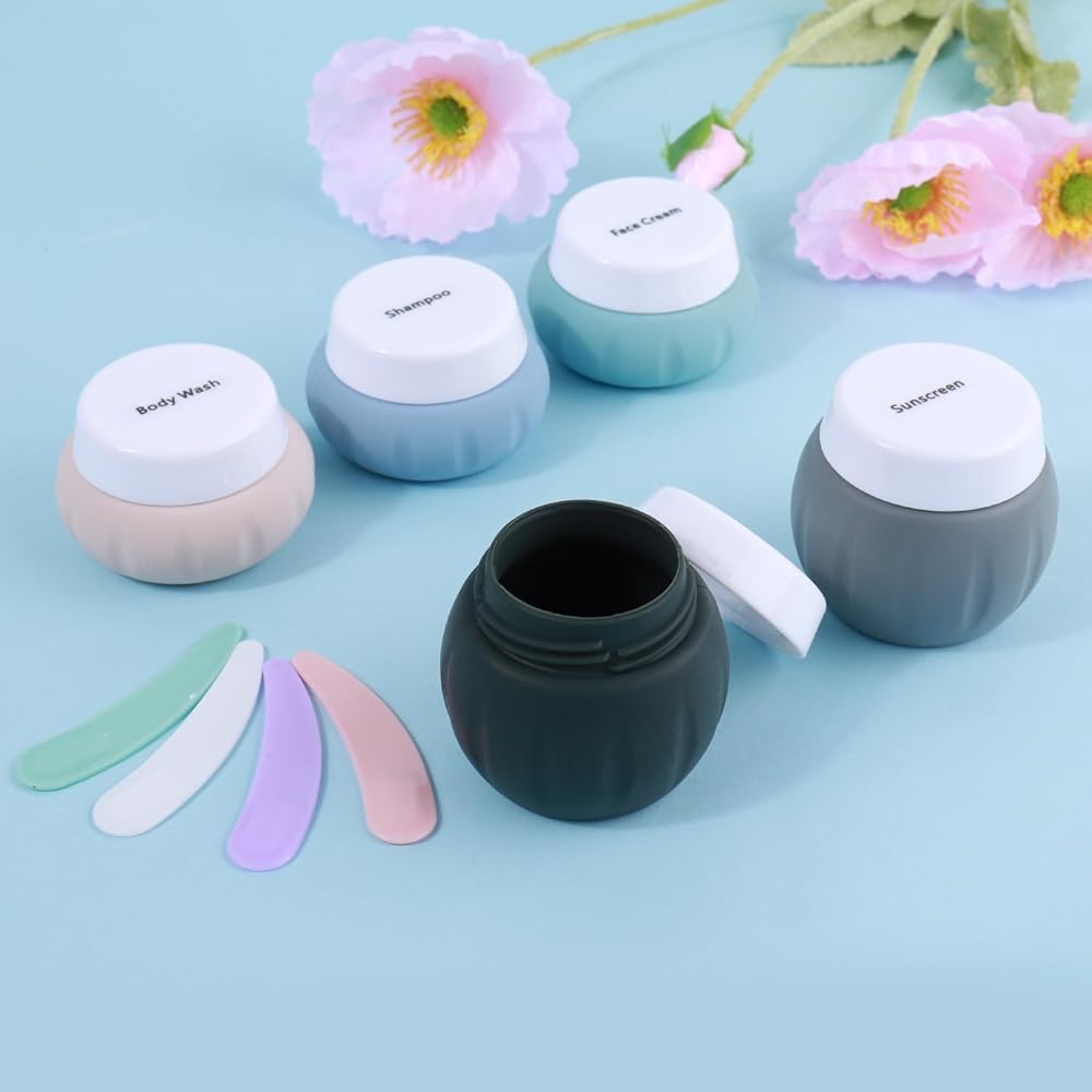 حاويات مستحضرات التجميل بحجم السفر: تشتمل مجموعتنا على 4 عبوات كريم سيليكون جاهزة للسفر، كل منها بلون مختلف. يساعدك هذا على تحديد المنتج الذي يتم تخزينه في كل حاوية بسهولة. متعددة الاستخدامات بحيث يمكنك استخدامها لمستحضرات التجميل والفيتامينات وأقراص معجون الأسنان والمجوهرات وما إلى ذلك.