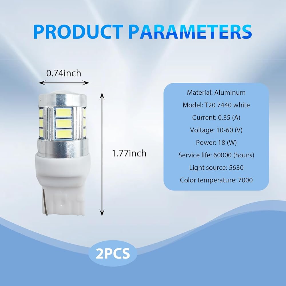 Easy to Install: Package includes 2 x T20 7440 white bulbs, suitable for most cars, can be used as turn signals, reversing lights, brake lights, signal lights. Completely original 1:1 design and installation without changing the car wiring or damaging the original car lamp structure, just plug it in and use it.
