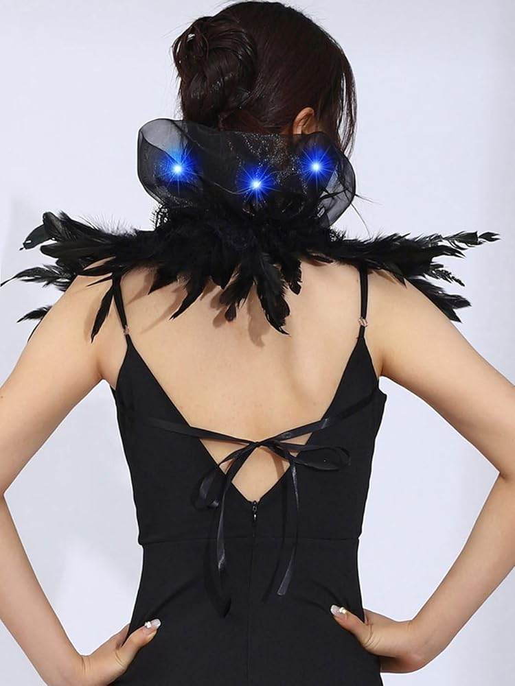 شال رأس ريش تنكري للهالوين، والتصوير الفوتوغرافي، والأزياء التنكرية، والعروض القوطية، والحفلات التنكرية، والكرنفال وغيرها من المناسبات الخاصة. زي الكرنفال سوف يكسبك المزيد من الثناء.