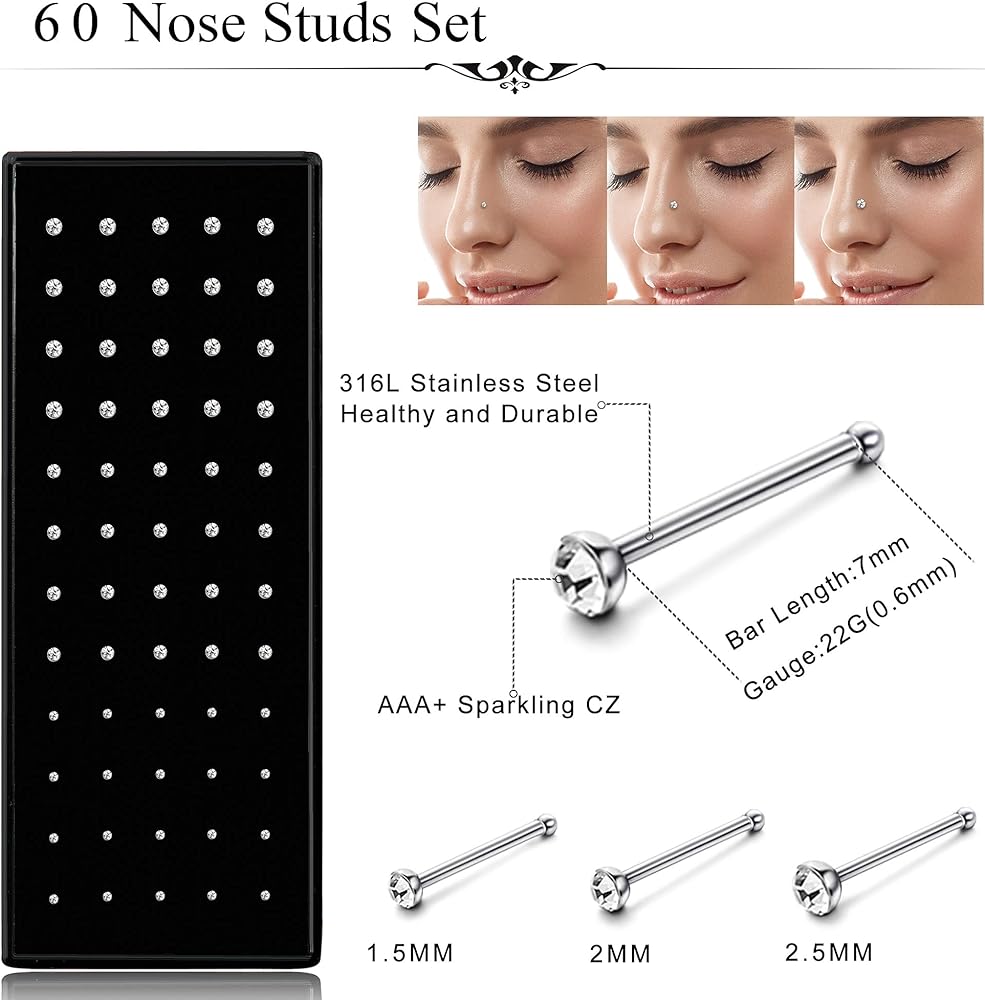 [جيد للبشرة الحساسة]: مصنوع من الفولاذ المقاوم للصدأ 316L والكريستالات اللامعة، قوي ومتين، خالي من الرصاص والنيكل، صديق لبشرتك. مع مصقول عالي الجودة، ستبقى ثقوب الأنف هذه مشرقة لفترة طويلة وليس سهلة. لتتلاشى، مما يمنحك تجربة مريحة وعصرية.