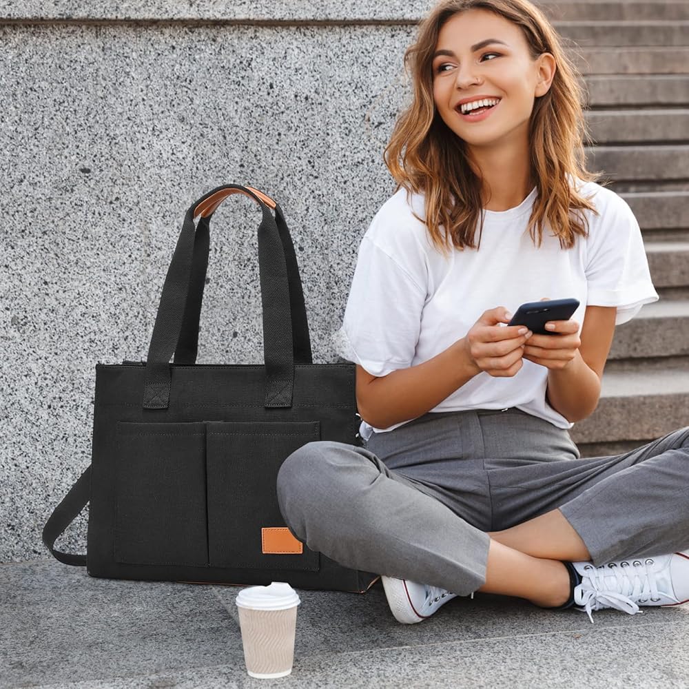 Barsine Laptop Bag for Women With Pockets 15.6 Inch Large Canvas Tote Purse for Work Travel