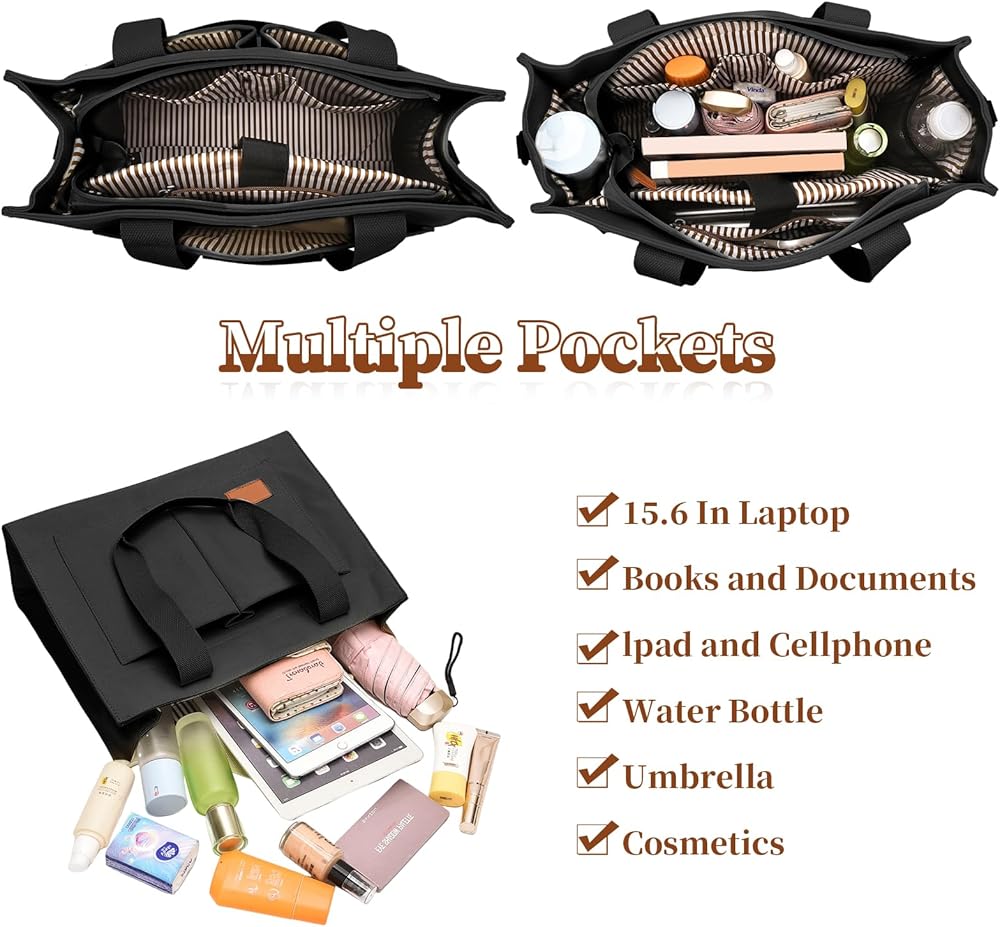 • Dimension: 16.0"(L) x 5.0"(W) x 12.5"(H), the tote bag is large enough to hold all your daily essentials, built with 15.6 inch computer compartments, protect your devices