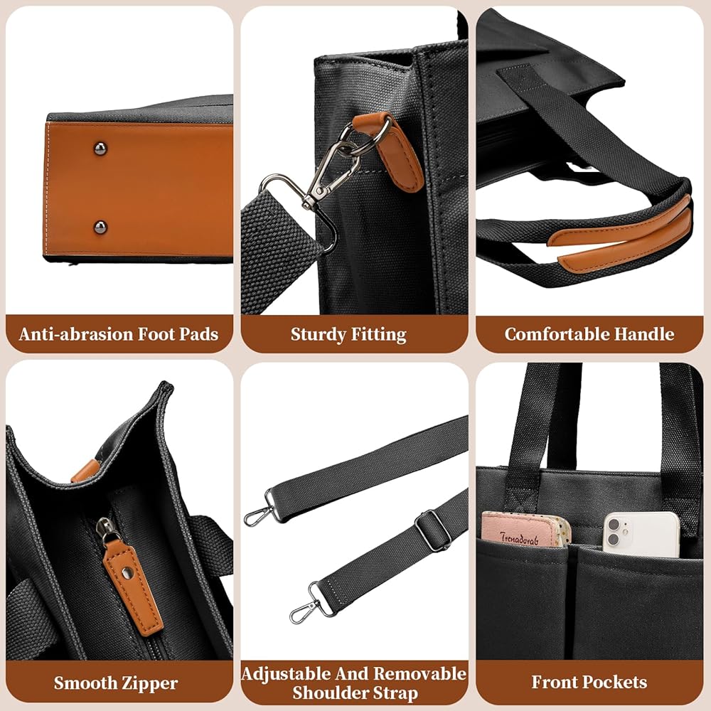 • Materials: The laptop tote bag is crafted from heavy duty canvas and polyester lining, matched with smooth zipper, which can stand on itself