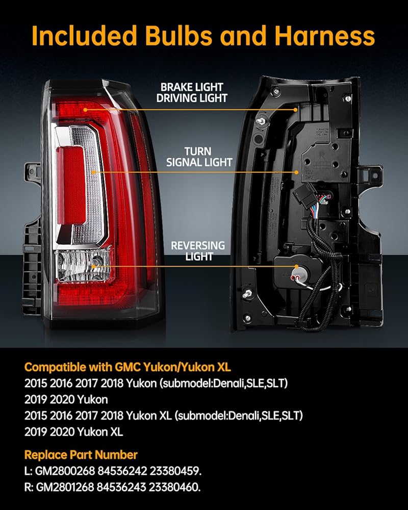 - متوافق مع: 2015 2016 2017 2018 يوكون، الطراز الفرعي: دينالي، sle، slt، 2019 2020 يوكون، 2015 2016 2017 2018 يوكون XL، الطراز الفرعي: دينالي، sle، slt، يوكون XL 2019 2020