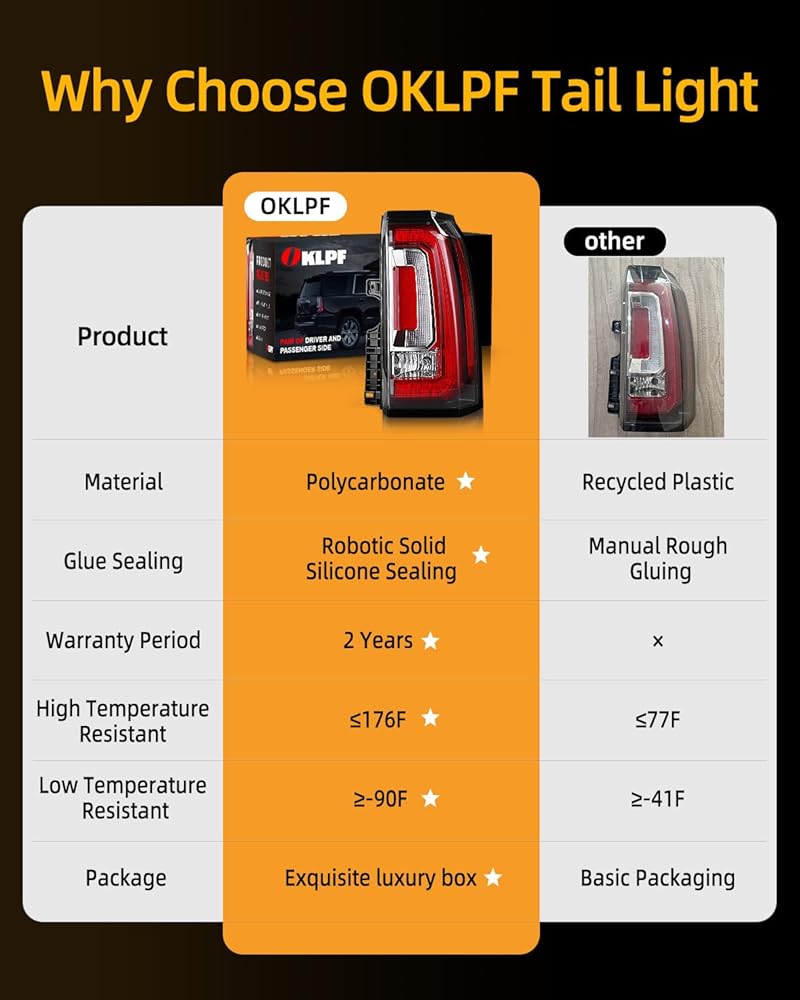 - جودة فاخرة: تم تصميم وتصنيع المصابيح الخلفية LED يوكون بعناية من قبلنا، باستخدام مواد عالية الجودة من أجل المتانة