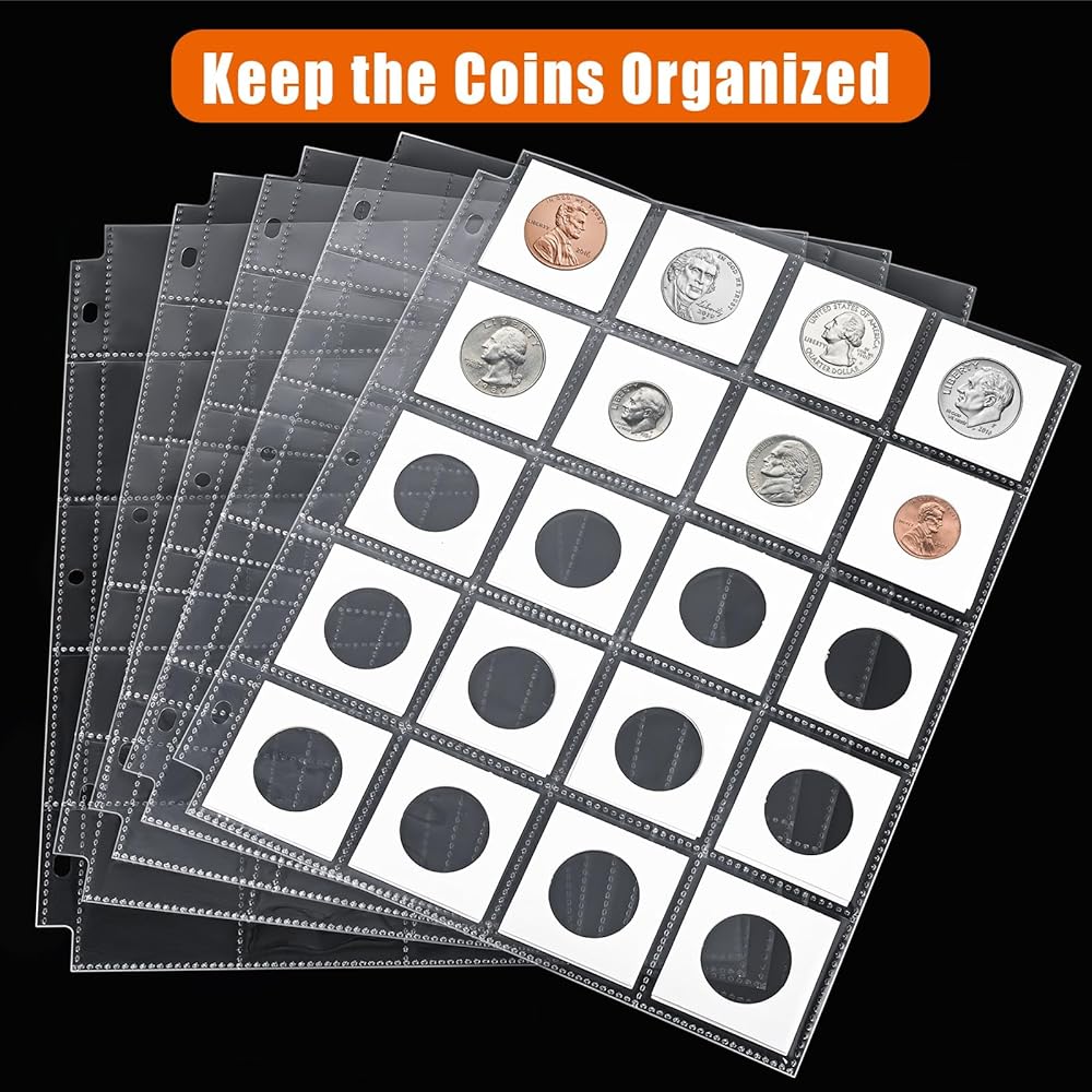 توتاتا أكمام للعملات المعدنية ذات 20 جيبًا، صفحات عملات معدنية لقلب العملات المعدنية مقاس 2 × 2 بوصة، لوازم جمع العملات المعدنية، 80 قطعة