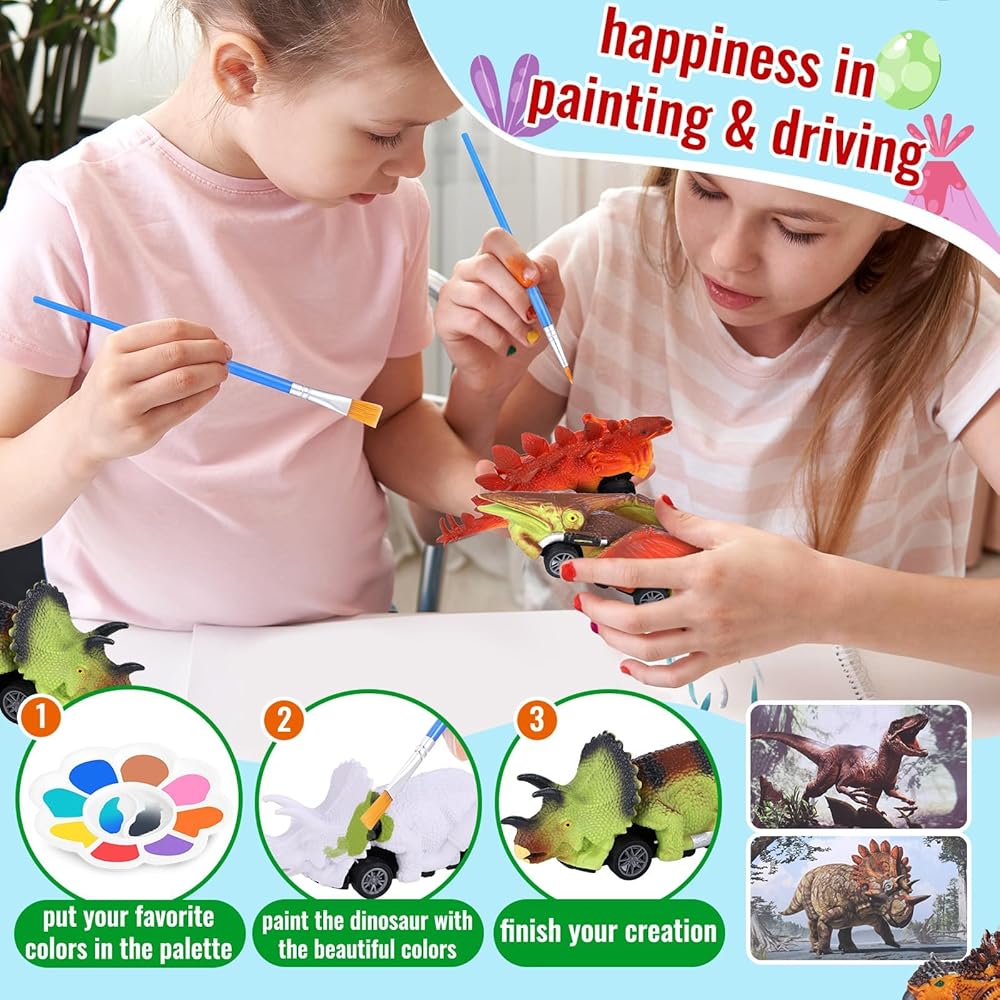 12 حزمة من سيارات لعبة الديناصورات DIY عدة الفنون والحرف 2 في 1 مجموعات طلاء الديناصورات التراجع سيارات دينو هدايا عيد ميلاد للأطفال 3-12 بنين بنات أطفال صغار