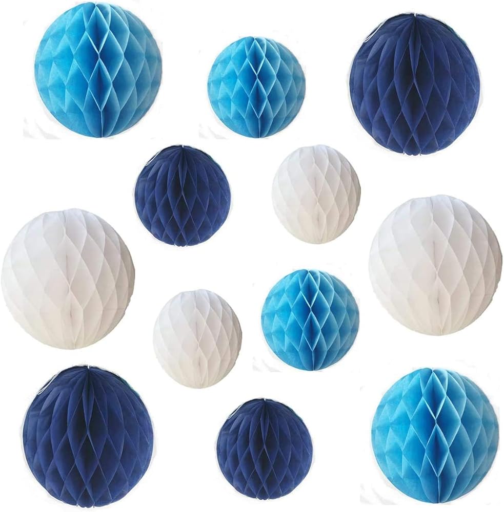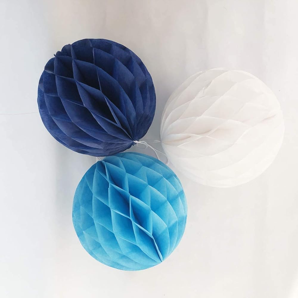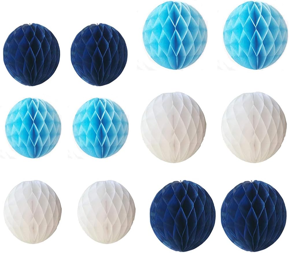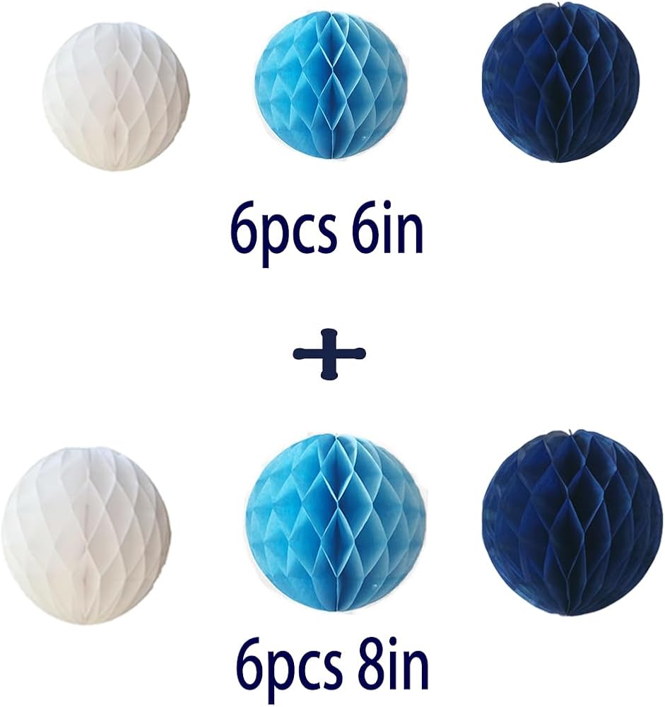 Pakage: 12pcs honeycomb balls Size: 6in+8in They are easy to put together which flat packed ready to unfold and hang string attached, great for party, home decorations or children game, birthday, wedding. Please contact us directly if you meet any problems, your satisfaction is our goal