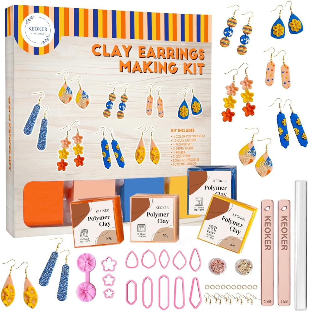مجموعة صنع أقراط طين البوليمر من كيوكر، مجموعة صنع المجوهرات من طين البوليمر، مجموعة أدوات صنع أقراط طين البوليمر، مجموعة صنع أقراط طين البوليمر، هدية رائعة للمراهقين والبالغين، مجموعة صناعة الأقراط من طين البوليمر