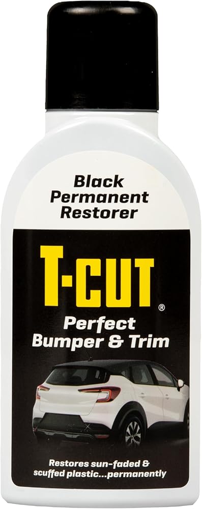 If it says T-Cut…it works! T-Cut Perfect Bumper & Trim is the number one solution for scuffed and sun-faded bumpers and trims. It is a pigmented permanent plastic restorer that permanently colors black plastic and vinyl back to its original finish. Directions: Gloves must be worn at all times during the application process. 1) Prepare the surface to be treated. Clean, thoroughly degrease and rinse away residual degreaser with water. Ensure that the entire area is dry before continuing to the next step. 2) Shake bottle well for at least 2 minutes or until contents are thoroughly dispersed. 3) Apply product onto a microfiber cloth and coat entire surface evenly. 4) Allow 15-20 minutes to dry. 5) A second coat may be required if UV damage is severe. Note: Do not apply in direct sunlight or temperatures below 10°C and above 20°C. Only apply this product under cover or in dry weather. Allow to dry naturally undercover or during dry weather. Clean spillages immediately using cold water. Store in an upright position and secure when transported.