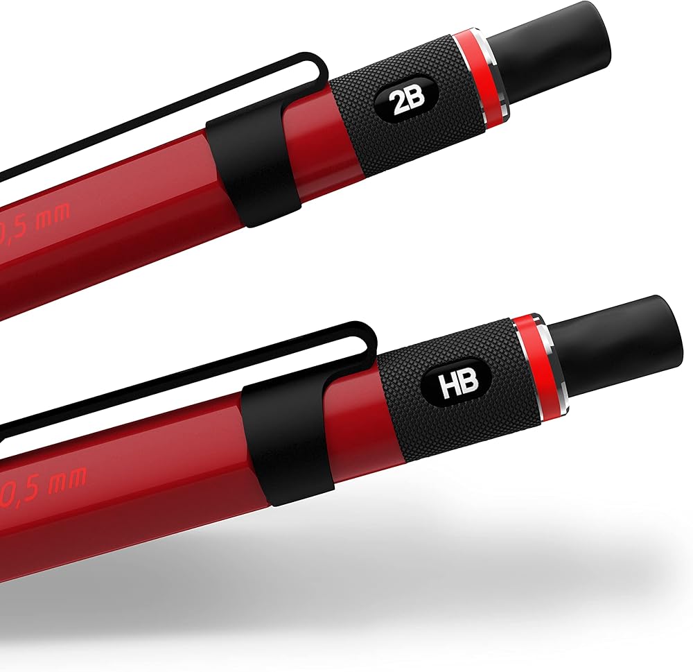 Premium mechanical pencil with lightweight plastic body and textured metal grip zone provides comfort when writing or sketching