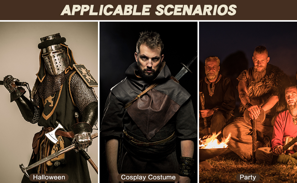 استخدام واسع: حزام السيف الخاص بنا مناسب لأزياء شخصيات لعب الأدوار مثل الفرسان والساموراي والجنود والأمراء وما إلى ذلك. يمكن مطابقة حامل السيف هذا مع أي ملابس تحتاج إلى ارتداء سيف. يمكن أيضًا استخدام حزام السيف من العصور الوسطى في أحداث لعب الأدوار مثل الحفلات التنكرية وحفلات الهالوين والتجمعات العائلية والحياة اليومية. كما يعد حزام السيف الخاص بنا هدية ممتازة لعشاق لعب الأدوار.