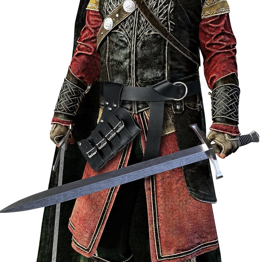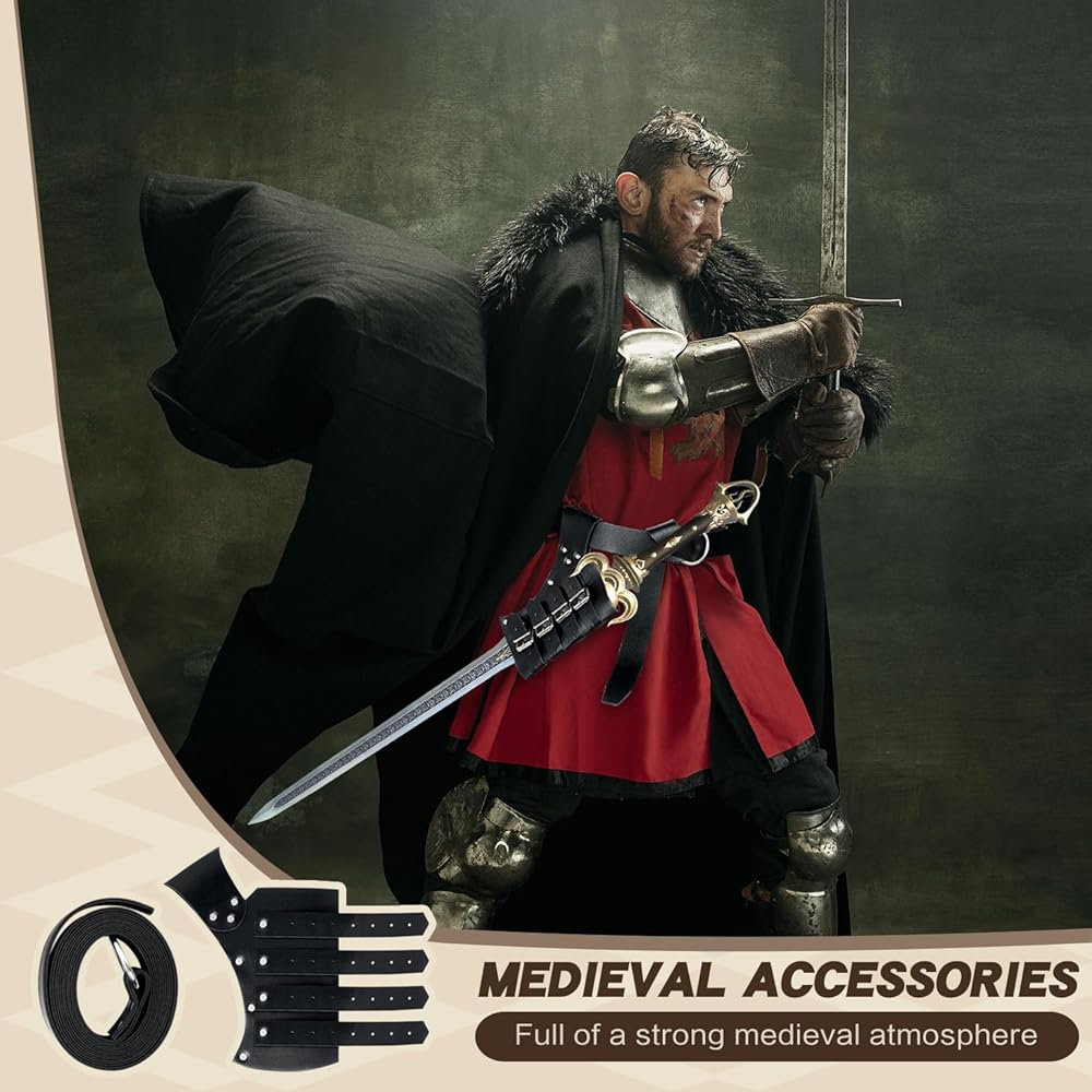 طراز عصر النهضة: تصميم كلاسيكي مع أبازيم تثبيت يعيدك إلى العصور الوسطى. قم بلبس زي شخصياتك المفضلة مع حافظة السيف العتيقة هذه. تصميم رائع وبسيط، مما يجعلها حافظة السيف المثالية لكل محبي السيف