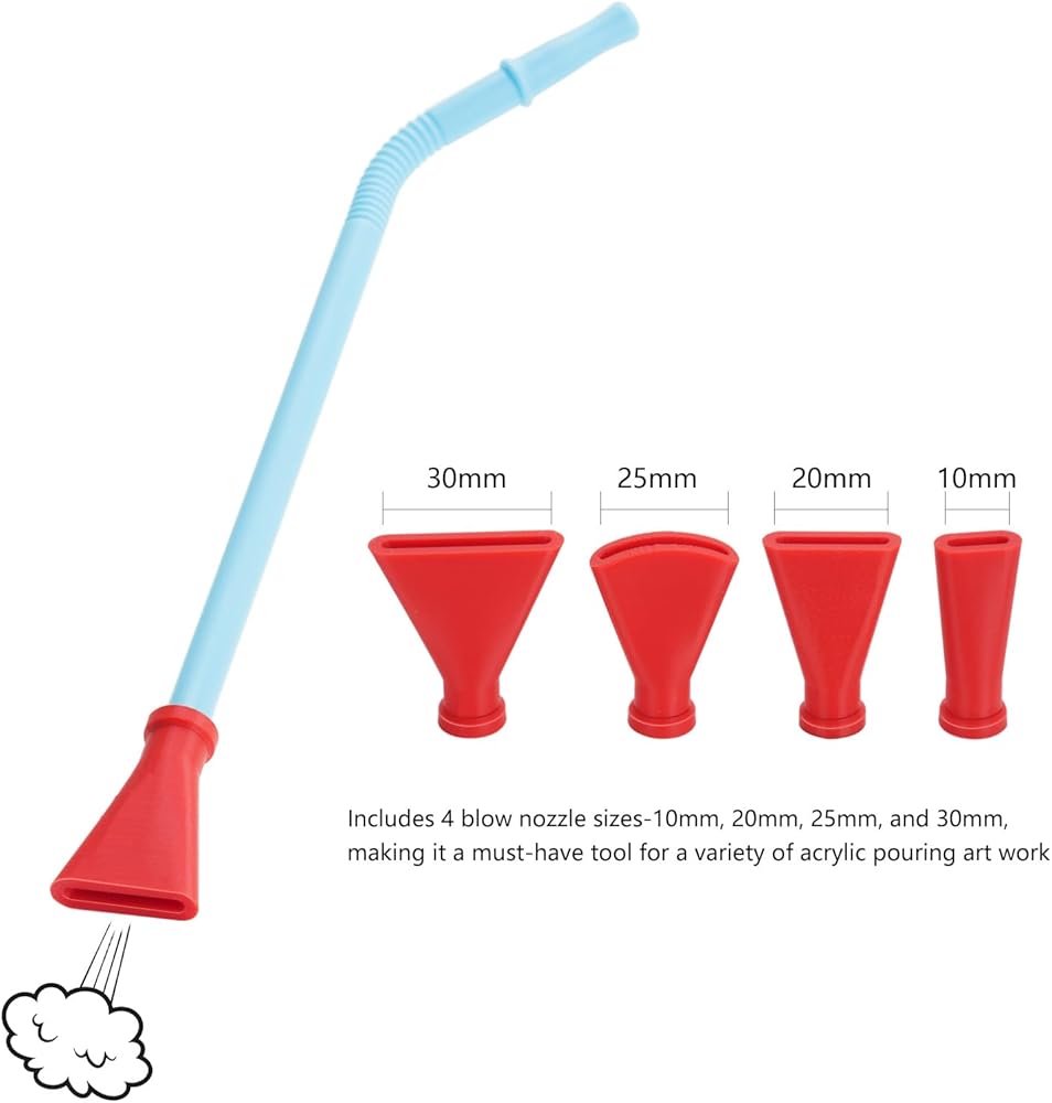 تتضمن 4 أحجام لفوهات النفخ - 10 مم، 20 مم، 25 مم، و30 مم، مما يجعلها أداة يجب اقتناؤها لمجموعة متنوعة من الأعمال الفنية لصب الأكريليك.