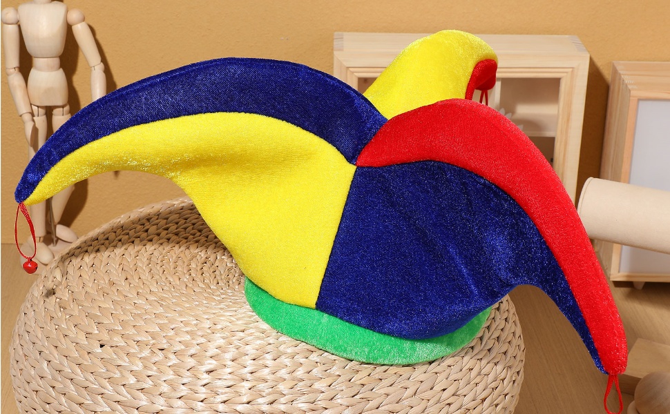 - قبعة المهرج مع الأجراس: قبعة المهرج متينة ومريحة لأي شخص يريد ارتداء زي مهرج، زي الهالوين الرائع