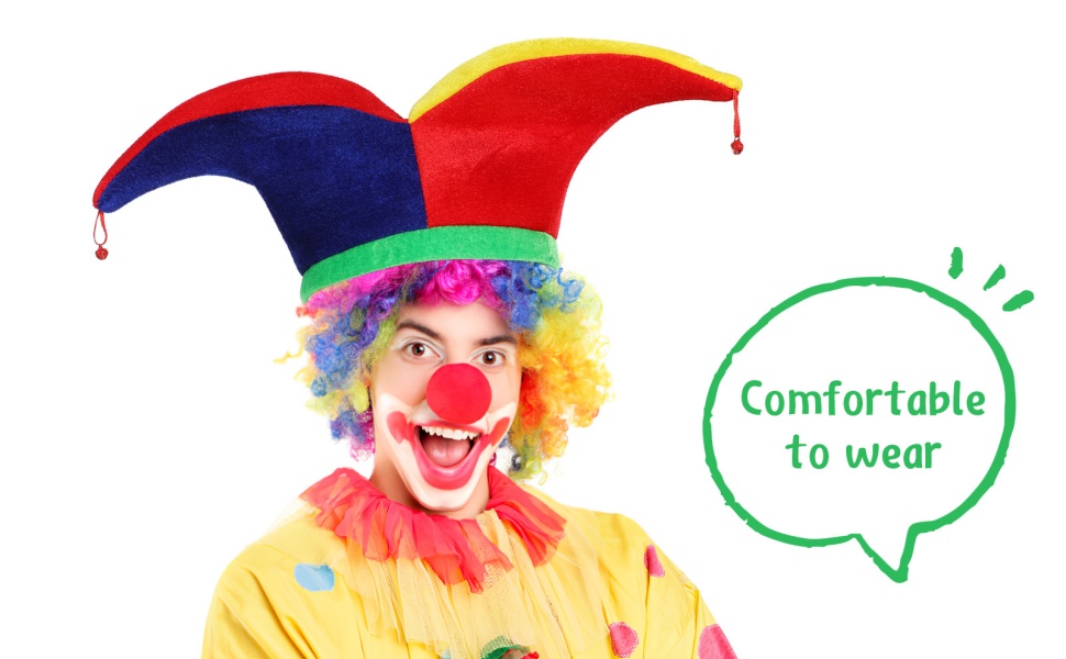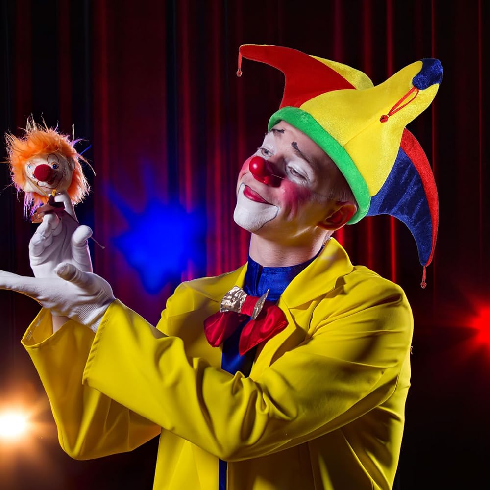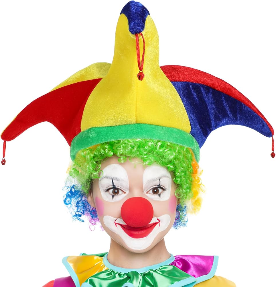- قبعة المهرج: قبعة المهرج مصنوعة من أجود المواد وتأتي مع غطاء رأس ناعم، مما يجعلها إكسسوارًا رائعًا للزي الكوميدي.