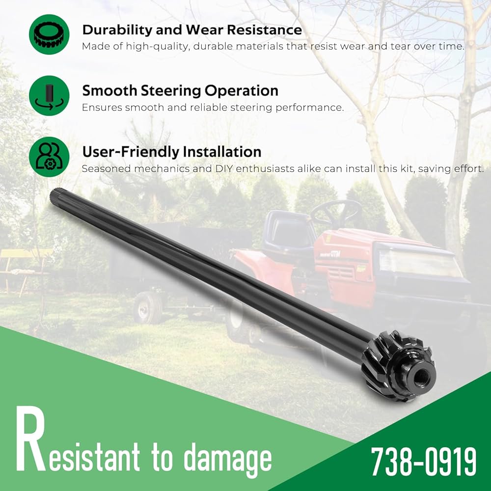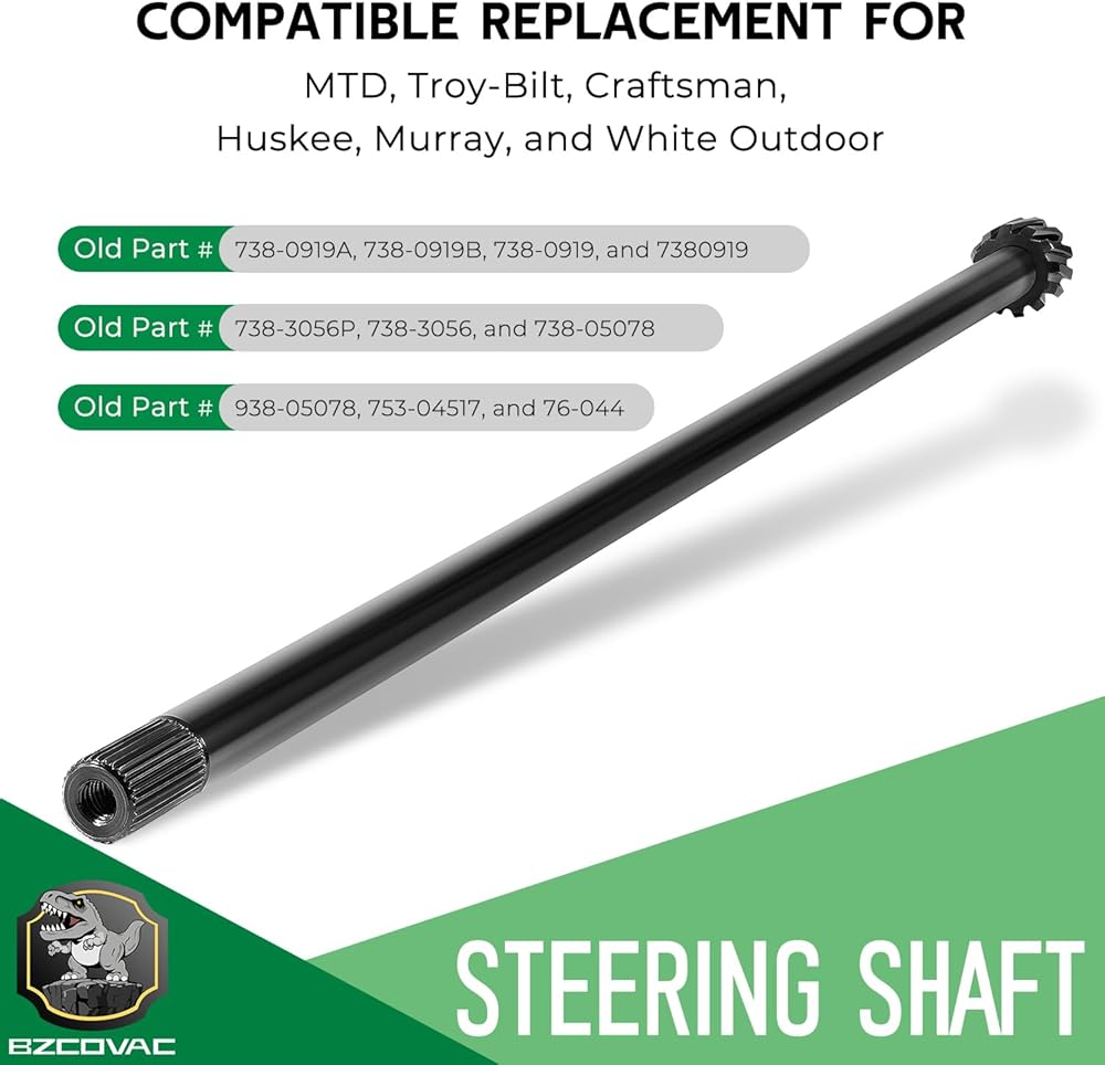The 738-0919 Steering Shaft (also known as 738-0919A and 738-0919B) is designed to replace worn or damaged steering components in a variety of lawn mower models.